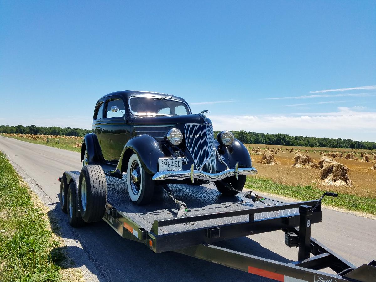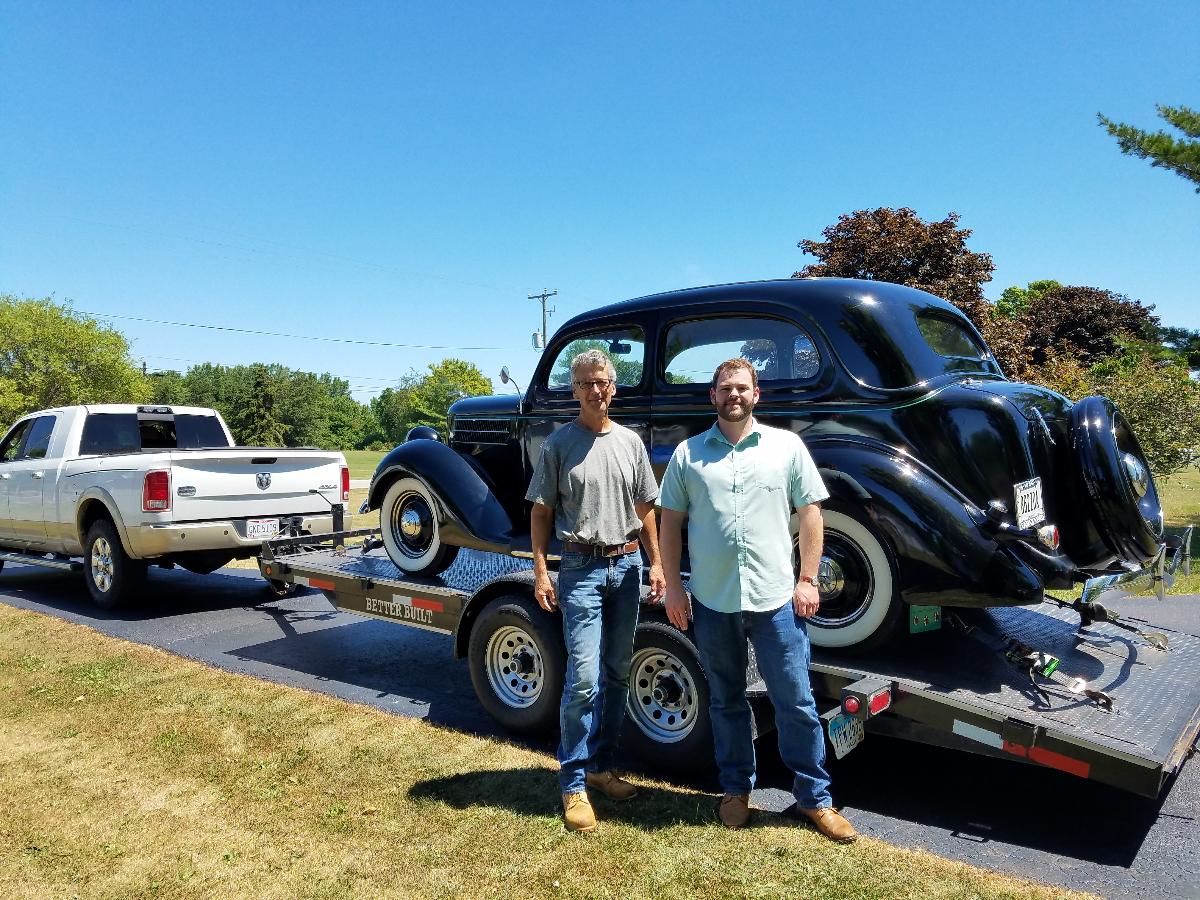 If I were to have a 1930’s car, I discovered it would have to be one of the superior engines of the time period. Affordable as well as plenty of parts available and beautiful body style’s including deluxe features and innovations, I knew it would have to be a Ford product. I have always liked the 1936 year, love the grille and updated body style compared with the 1935 year car. My dream of owning a 1930’s car came true just a few weeks ago. I was looking for an original, good/excellent condition, unmolested factory original car. A two door example that ranged between a Tudor and coupe was on my list. The Tudor’s are more affordable regarding my current budget. A coupe would be nice down the road if I ever have an opportunity to own one. This recent purchase I made met the above criteria, I purchased an original un-restored/well preserved survivor 1936 Tudor touring deluxe sedan. I wanted to share this car with all of you. My goal with this car is to achieve maximum factory original mechanical performance just as when the car was new off the assembly line. I want to make the car reliable, able to make a 100/500 or more mile trip if I so desire. I want the car in top mechanical shape; I do not want to deviate from factory specifications. I want to preserve the original interior; original enameled black paint as well as all cosmetic details. I may do an engine rebuild way down the road, transmission if needed. Right now I am in the process of evaluating and servicing to achieve road worthy status. My goal is to have a sound mechanically serviced cosmetically original car ready for showing and driving enjoyment by next spring or prior. I want to preserve this car in its original state as much as possible. I will not deviate from factory specification and will remain with factory re-production parts as needed. I value history as a whole; I view this car as a rare original specimen that is not often seen these days. I am an enthusiast, although still learning. I may ask plenty of questions, please bear with me! Such a great website, I look forward to becoming more involved with the club as soon as the pandemic subsides for all of us. Pictures shown in both posts are of the car I purchased. Picture with previous owner (wearing cowboy hat) shown as is the car in his garage prior to my purchase, I am the guy on the right with the turquoise button shirt! Picture of the car on trailer with me and another fellow in grey shirt: I couldn't of done this without my friend's help and his truck/trailer. He collect's 1950's Chrysler products. Jon Ketron