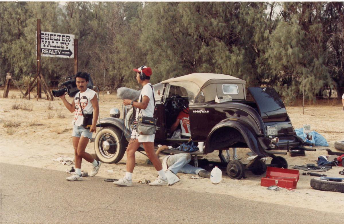 Stanley Jones changing a clutch in his 32 Ford V8 Roadster beside the road 1 hour east of San Diego CA. on the 1990 Great American Race. A Certified Ford V8 guy from Woodland Hills CA., drove the car to NYC to race 4100 miles back to Disneyland. He did about 15 races with this car as Driver/Mechanic/Navigator, no pit crew. This clutch job took less than one hour and the Japanese TV crew was amazed.