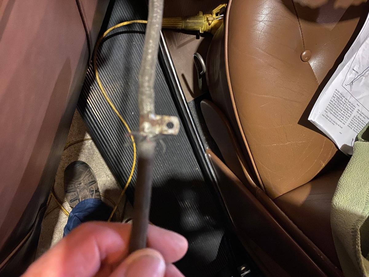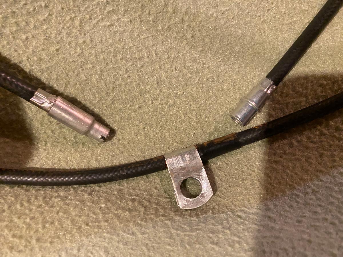 Alan, I had to look up A pillar and I see no difference between A pillar and windshield pillar in reference to my car. It has but one front (winshield) pillar, one removable B pillar, and that is it. Remember it is a convertible. It has no vent windows which might entail another pillar. The coax is long enough. The pictures are left, the replacement cable, and right, the original cable that I cannot get out because it's (antenna) end will not go between the two metal pieces (dash & firewall or support?) which I cannot picture. Dennis Carpenter says that their kit is exactly the same as the Ford original, although the grounding lug is a bit larger. But this is not my first problem. The end, even of the old cable, will not come out between the crack between dash and other metal piece. The new cable is slimmer because it is plastic coated modern coax, but the ends are about the same.