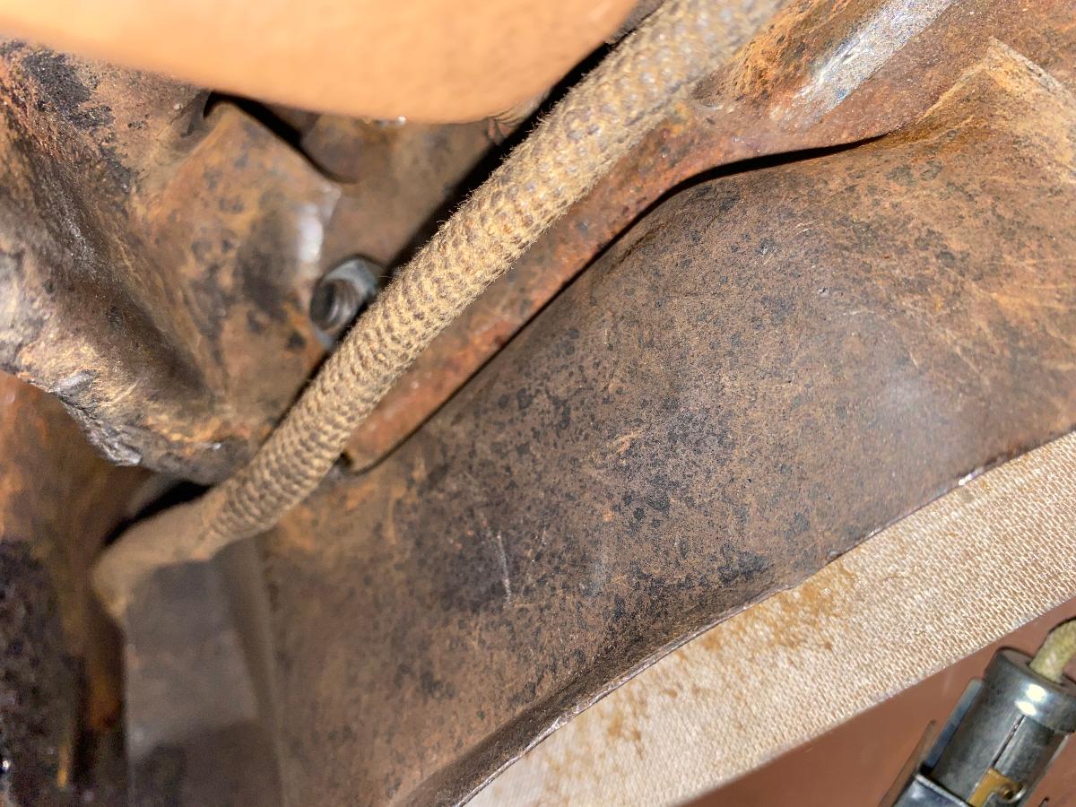 Thanks for the best wishes, Alan. FYI my radio is all one piece, including speaker. It is mounted in the center of the dash with the tuning dial at the bottom of the radio and the dash. It sounds as if this is different from yours Has anyone put an antenna in a 38 Deluxe convertible sedan? These are the best I can get for pictures of the problem area. The old coax is what is pictured and it is stuck so the last bit (the antenna connector will not come out the bottom.