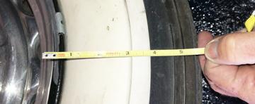 "Beauty Bar", I wondered if there was a name for it. I like that look and do have something similar on my '36 5W and have not been able to find them in their catalogue. Please do share the part number or how you ordered them. I have something similar on there now but they are probably 15 years old. Wonder if they can do them in radials? Or even double white walls in radials with the beauty bar. I know the picture does not look like it, but when I bend the tape measure to the end of the wheel, the white wall does measure 3 3/4", a half inch of that is the beauty ring. Glad to know it has a name. Steve in Denver PS, I have not had any curbing problems, but I tend to watch when parking.