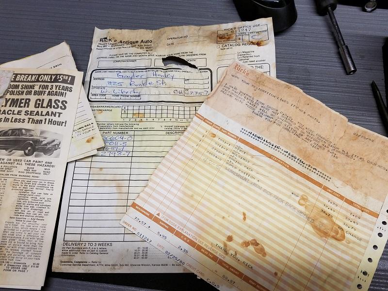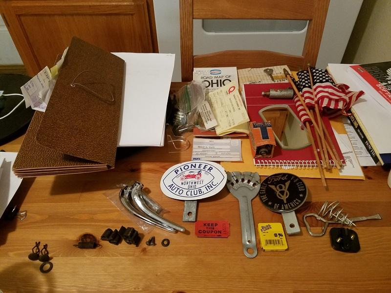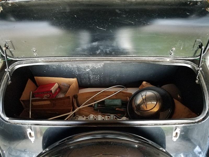 The previous owner told me the car used to run in parades and car shows back in the early 1980s and before. He did not own the car back then though. Digging in the trunk I located three boxes of small parts. Two of the boxes had an old address (likely the owner before this old man) dated 1980 and 1982. Several old sales receipts for reproduction Ford V8 spring shackles, cotter pins, and bearings were dated 1980. The glove box contained quite a few items from the 1980s. One of those items included a map dated from the early 1980s. The previous owner didn’t know much regarding the car’s history. He purchased it at an estate auction back in 2018, owned prior by a deceased friend who had it for several years prior to passing.