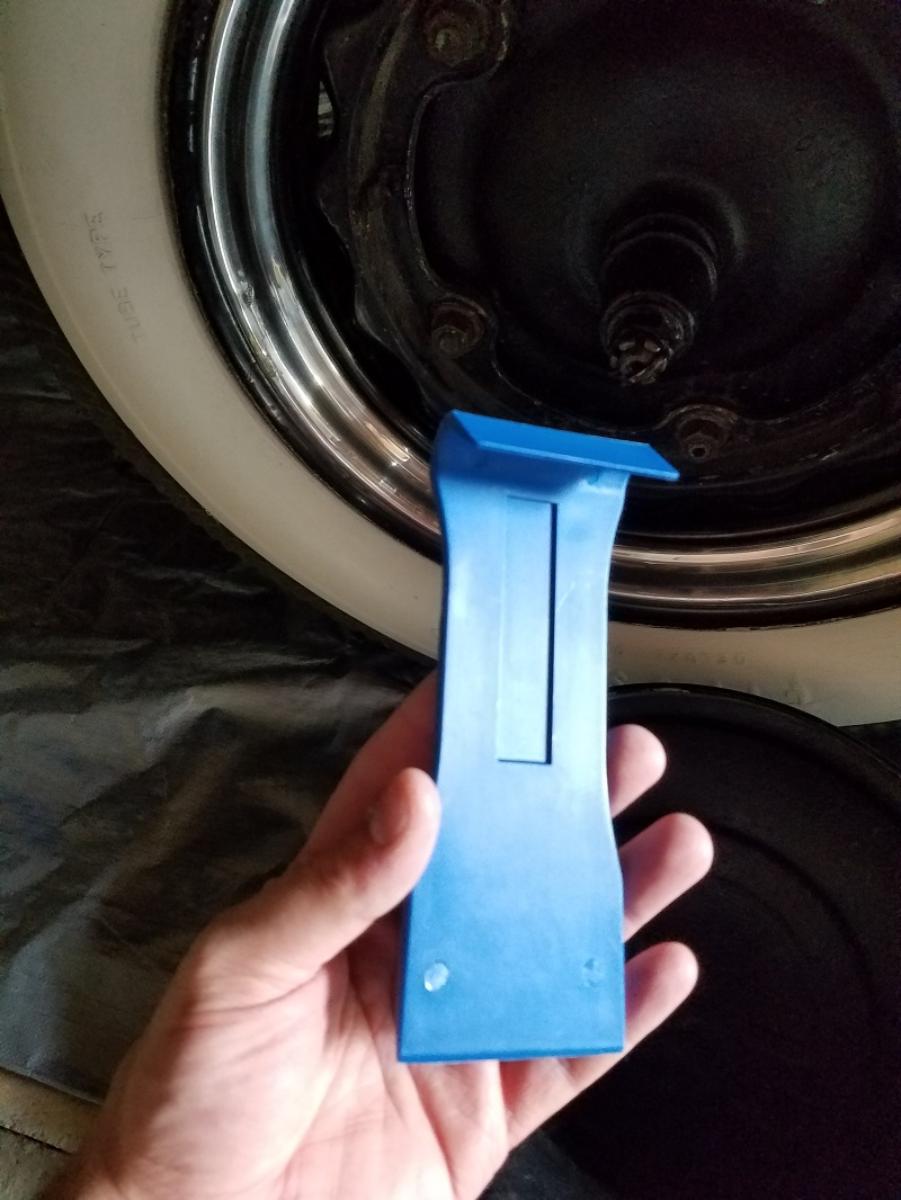 A harbor freight interior upholstery tool made from plastic is the finest tool to pull the hubcaps, no marring at all!!