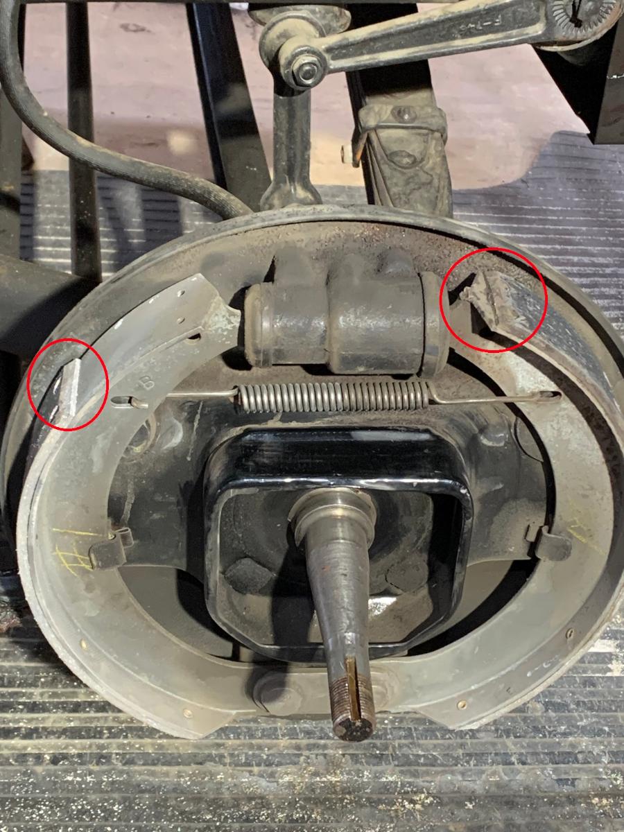 I'm in the process of changing the master cylinder and wheel cylinders. When I finally got the front drums off I noticed the brake pads are wearing on the outer edge of the top & bottom of the pads. Are these brake pads still usable or is this normal wear? If not, how do I adjust the pads to avoid this. Thanks