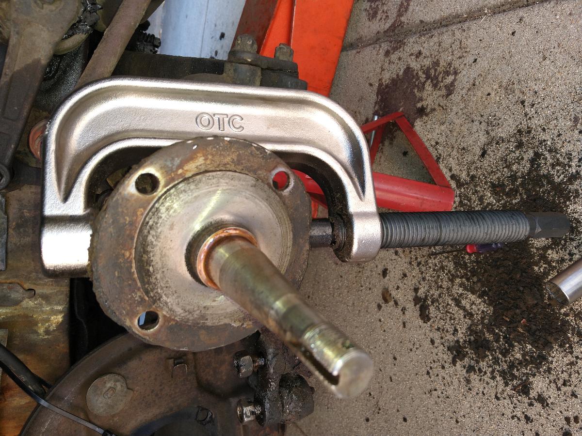 First of all, thank you very much to those who replied with helpful information/suggestions. I finally got the King Pins out, the Tie Rod off, and the Drag Link disconnected. For the King Pins, I purchased what amounts to "the mother of all C-Clamps" and they came out easily. This is a tool intended to be used for removing/installing Ball Joints, but it worked very well here (no pounding or heat). The hole at the top of the clamp was large enough that the head of the Pin would pass through it. The end of the threaded portion was a bit to large (larger than the O.D. of the King Pin) so I had to stack small sockets on it as the pin was driven upward.