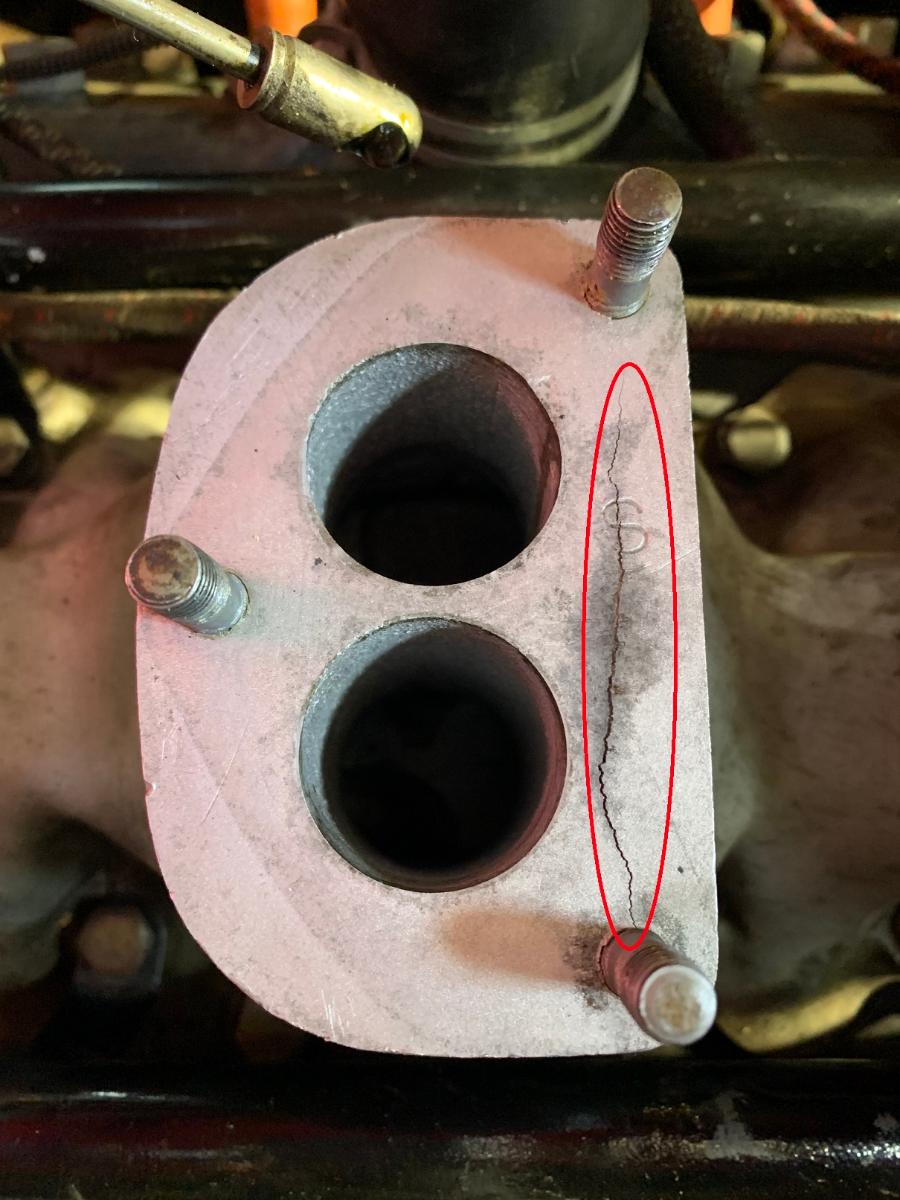 The real deal would be a good used manifold. They are some - what available. You could have it welded, or braised; but ask the welder if it will warp the manifold! (Doubtfull that it would) Is the surface where the crack is, still flat after being welded or braised?? Probably not; becuase the weld or braise will stick up a little. Braise is brass, and can be CAREFULLY FILED FLAT; WELD NEEDS THE M/C SHOP TO RE-SURFACE THAT AREA!!!! If you're not sure; after welding/ braising; take it to a machine shop to have them check it; and if it needs to be re-surfaced, the machine shop can do it.
