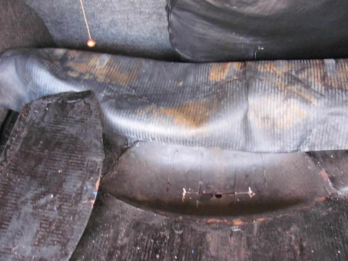 Have a 1947 Ford "long door" coupe which appears to have been assembled about mid-year. It has not indicated any 1946 left-over features/parts. I recently replaced the gas tank. When I rolled up the trunk floor mat, in center I found a suspicious oblong-shape metal plate riveted in-place. Further forward from that location is my spare tire, sitting in a shallow tire well, attached to the back of the rear seat. I had to access the forward bolt which holds the gas tank to the frame and it was beneath this mysterious floor plate. Broke the rivets and removed the plate to find a second spare tire well (see photo). During assembly of the car body, did Ford used a floor pan which would accommodate both the short-door business coupe body and the long-door body ? Anyone ever encounter this condition ? Also interesting, to form the spare tire well, they made several cuts thru the floor panel, bent and shaped the tire well, then used a fiber-glass type patching material to make the well water-tight.