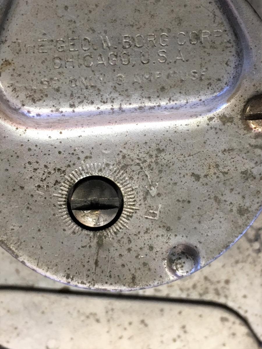 My clock was made by the Geo. W Borg Co. in Chicago. The stamping also says to use a 3A fuse. My clock quit working, and had no continuity when checked with an ohmmeter. So I took its apart, and found the contacts that energize the winding coil/solenoid were dirty, and not making contact. Cleaned them, put a bit of clock oil on what I figured were critical rotating parts, and it runs great. It took me a week having it on the bench connected to 6V to set the speed so it keeps reasonably good time. Of course I'm retired, so a minute here or there is no biggie. Just as long as the old ticker keeps ticking.
