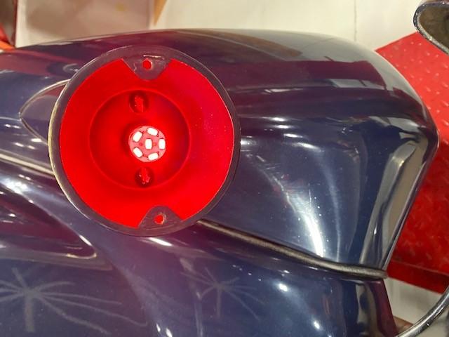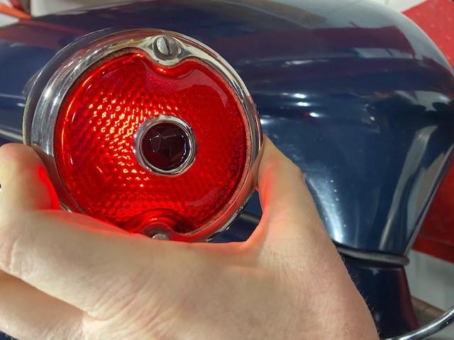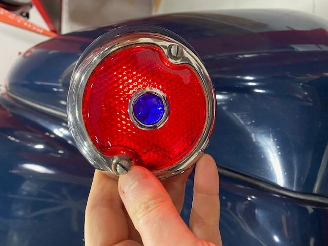 Just thought I would update folks. Switched from super bright incandescents (which didn't work well for me for some reason), to LEDs for the taillights. Definitely brighter. I ordered both white and red LEDs because I read somewhere that the red LEDs penetrated the taillights better. Honestly, I didn't see it. The red also didn't light the license plate, and since I have blue dots, the reds would not show through the blue filter. See photos below. For the purists out there, I do have the original red glass lenses. I keep them in the car. Switched to these after a friend of my Dad shared a story about them on his '35 phaeton when he was in high-school. Plus, they do seem to shoot a little more light back and may draw attention, which is really what I am going for with the brake lights right now. Up next for winter projects, I am going to run an extra ground to taillights, search for electrical short, try to figure out why my turn-signals stopped working, complete install of brakelighter, and seatbelts. Bonus points to anyone able to identify the make, model, and year of the car in the foreground. Dad's, not mine. Hint (not hint), we are pretty sure it was the first car to be manufactured with heated seats.