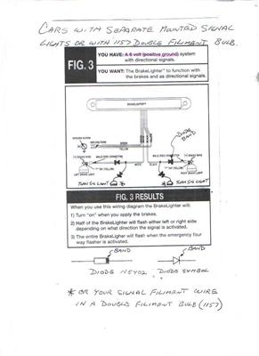 I posted before I looked for the wiring instructions for the Brakelighter. It looks like someone has drawn the diodes in on your picture. The diodes are not included in the link I looked up. The 3rd light has two separate sides to facilitate the signal function. Each side has a positive and negative connection. Just switch the pos/neg to reverse polarity.