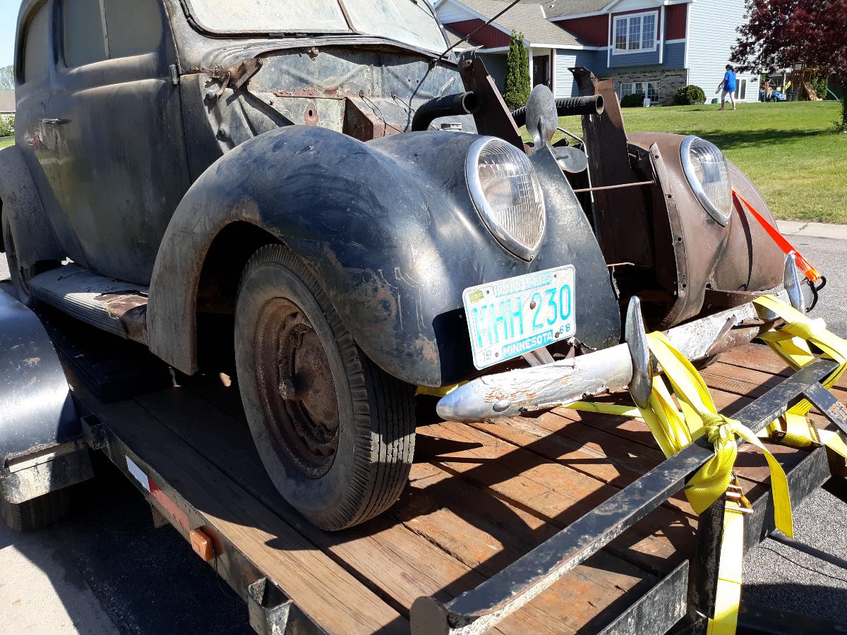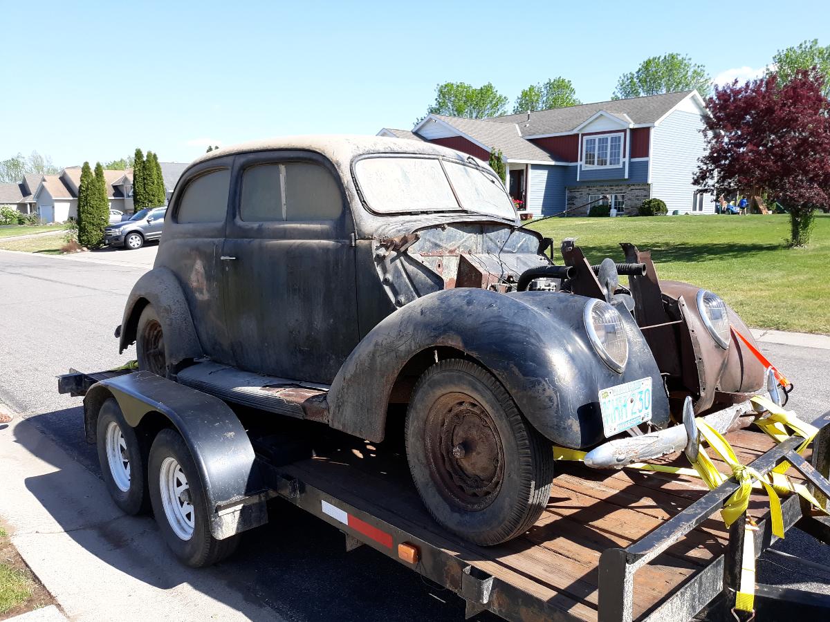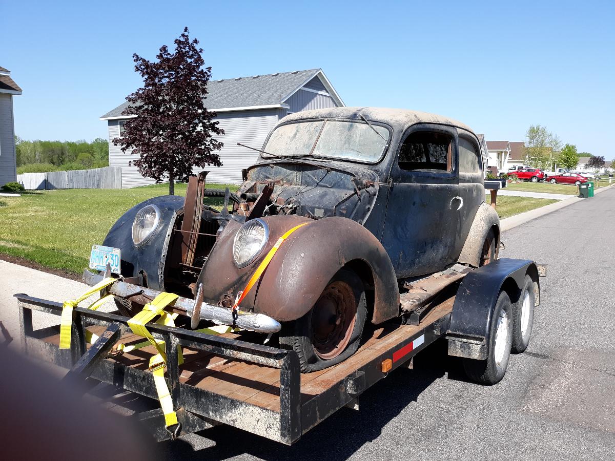 What would you do with this if it just showed up at your doorstep? I was so surprised, I didn't realize it was for sale until the guy was leaving. He is offering it for a fair price, but... It's a long story, but a friend of a neighbor of mine who knows I have a restored '39 Ford literally out of the blue just dragged this one to my house today. It was owned by my neighbor's brother and was in his barn for decades. The last registration sticker on the plates on the car are from 1970, it's been sitting for a long time. It does not have the hood and I forgot to look at the grille so all I know for sure at the moment is that is it a '37 Ford 2 door. I don't know my '37's well enough to say which one it is? The motor is frozen up, it looks like the original that came with the car. It doesn't have a title, but it does have a Bill of Sale. I think I can massage a title out of the State because this new owner who is offering it to me is a cop and I have connection to the original owner so I think it can be done. I'm assuming the frame is rotted out, but not sure. The body is rough and has rust but I'd have to look closer. Not sure if it's worth looking into restoring? I'm going to have another look at it with an eye for buying it, or not. If so, what would you do with it? Or am I better off just buying a car instead of a project like this? Any thoughts? Thanks!