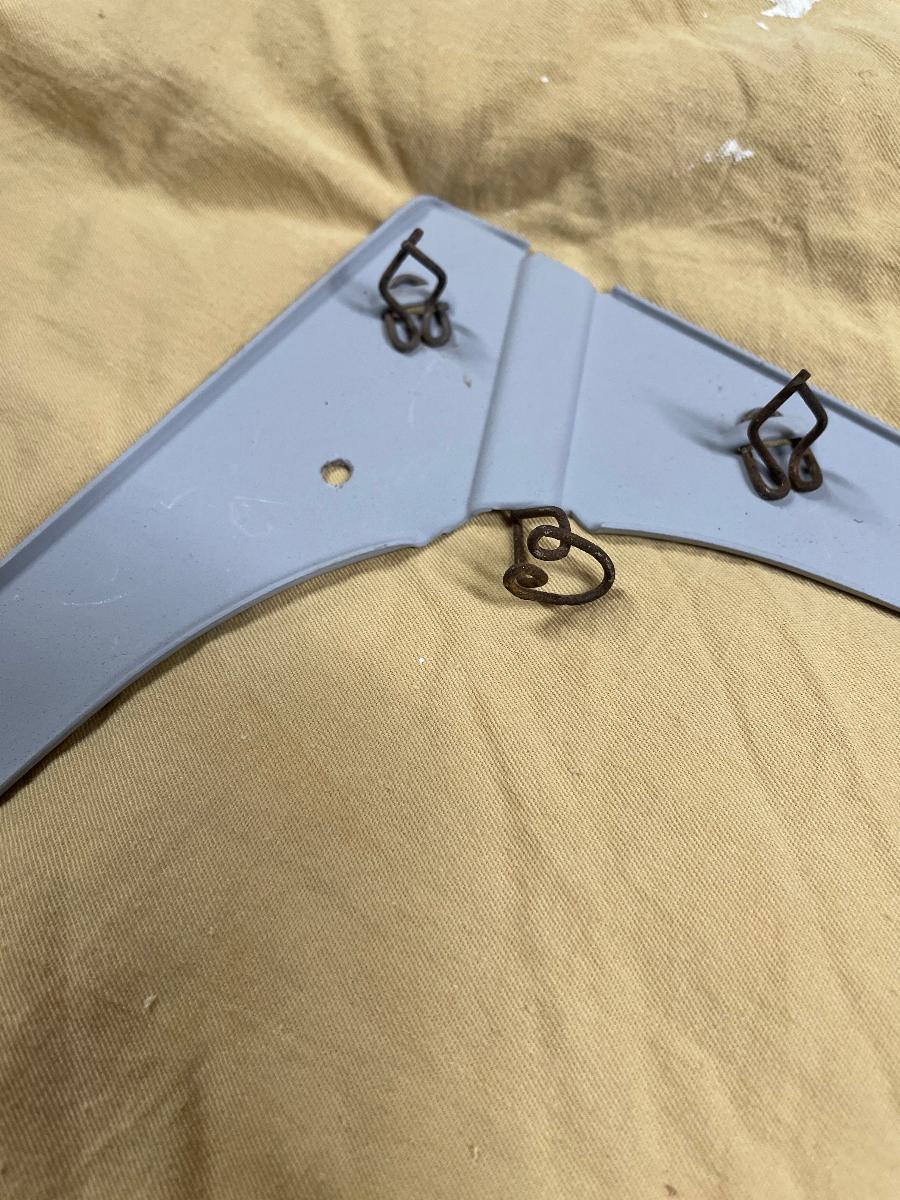 Hello Ladies & Gentlemen, I have a 1940 Fordor. There are strips of upholstery surrounding the windows on the top and sides of the windows. Aforementioned upholstery is adhered to narrow strips of sheet metal. Upholstery clips are inserted into stamped slots on this metal strip (see picture), then snapped into holes in the doors. These clips are smaller than the clips used to adhere the lower upholstery door panels to the doors. I am in need of about 35 of these smaller clips. The base length of these clips is .620" and the width is .400". Any suggestions on where to purchase these? They were not included in the upholstery kit purchased from Mac's. I'm unable to find them in Mac's catalog, but my wife says I can look straight at something and not see it. Is she correct in this case? Thanks very much for your input, Folks. Regards, Barney