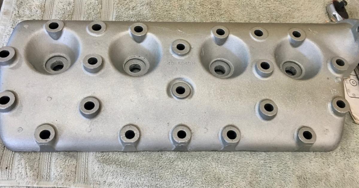 I own a '34 Ford which is largely original. Sometime over the years a previous owner swapped the aluminum cylinder heads for steel and I am in the process of replacing them. The passenger side cylinder heads are scarce, but I came across this one in usable condition (pictured). The part number stamp has the letter "R" after the numbers 40-6049. This seems unusual; is this a Ford head? I am wondering if it could be an aftermarket replacement part. Thanks.