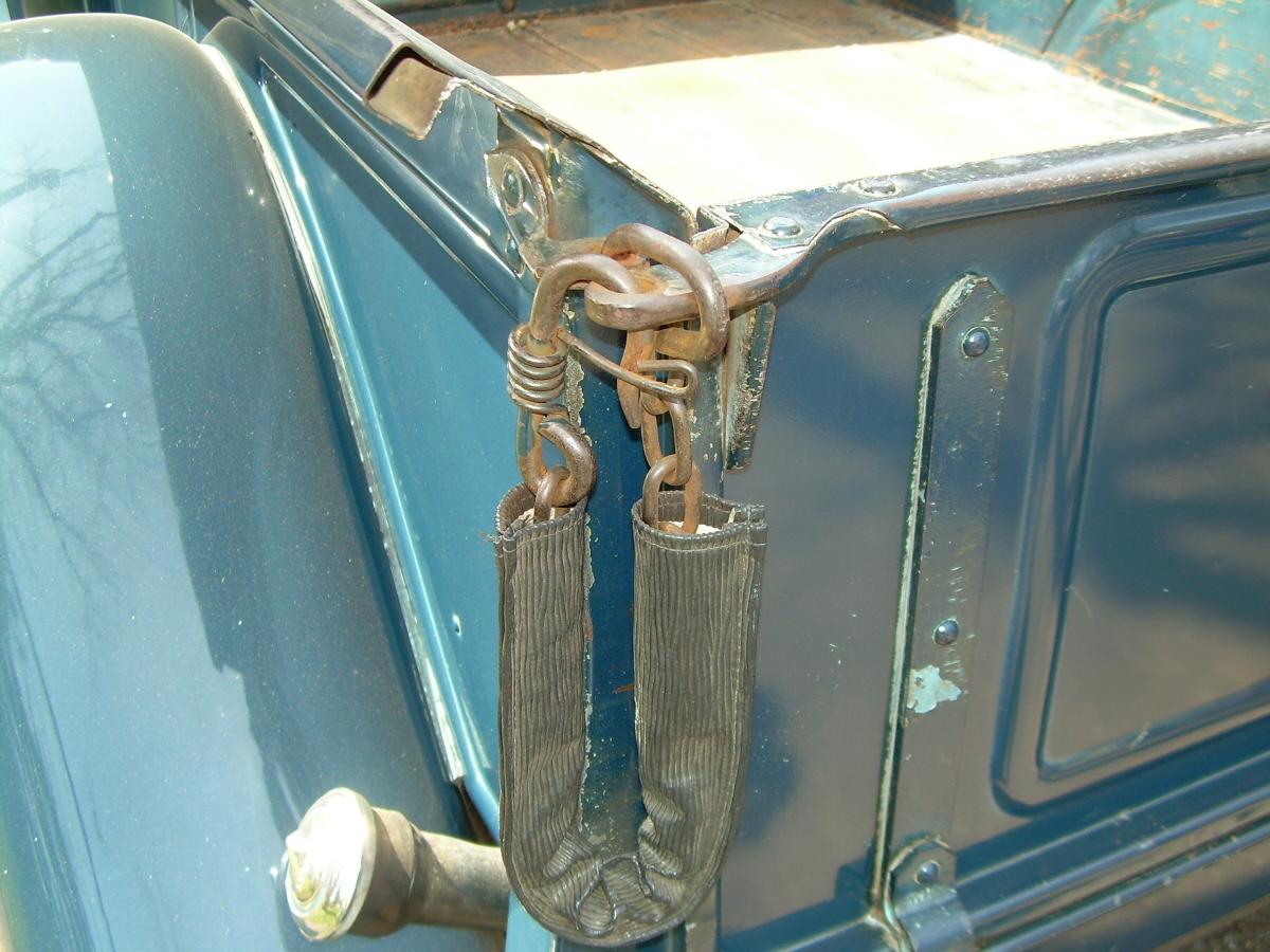 Would someone be willing to post a picture of just how the retainer spring is attached to the hook on the tailgate chain for a ‘36?