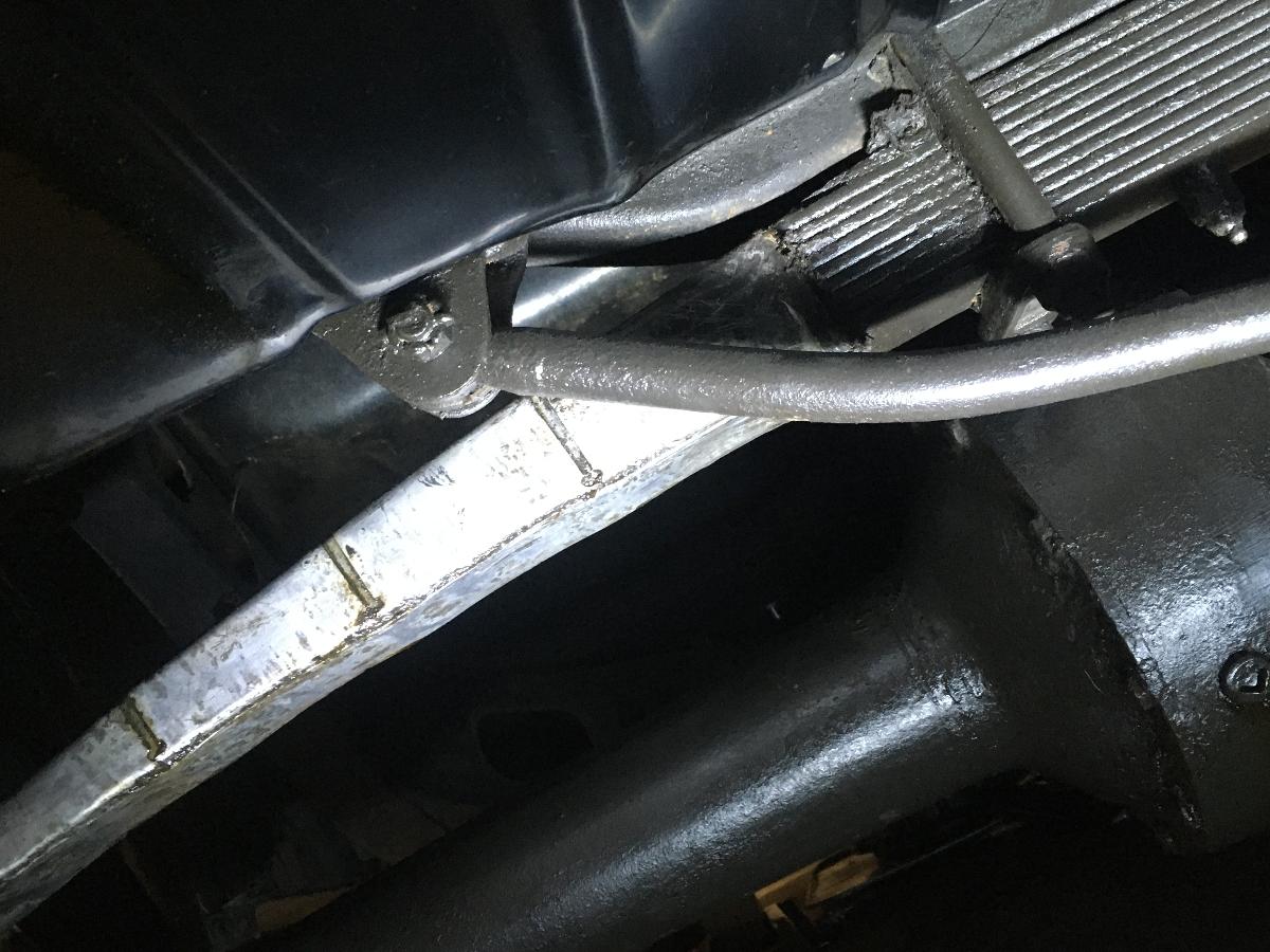 I am not familiar with a 1946 model frame, but that rear crossmember doesn't look right to me. On the earlier frames, 1937 for instance, the crossmember had a flange on both the front and rear sides and there were holes that the large spring u-bolts went through. I don't see a rear flange on your crossmember, which may be the way your model was made. One of your pictures makes it look like the spring is way out of alignment with the center of the rear axle.