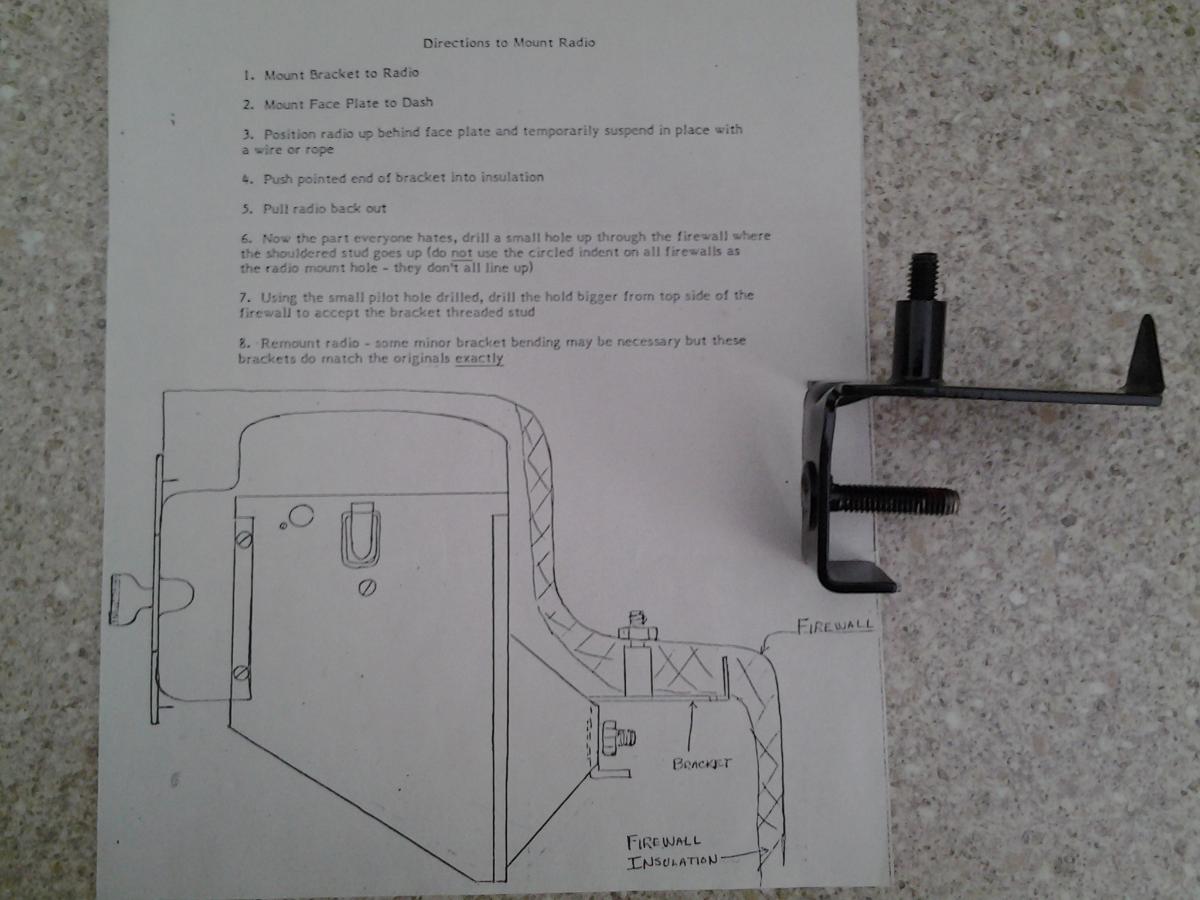 If you search on fordbarn.com you can find dimensions and many more photos of the rear bracket. The photos of the radio faceplate are also from fordbarn.com