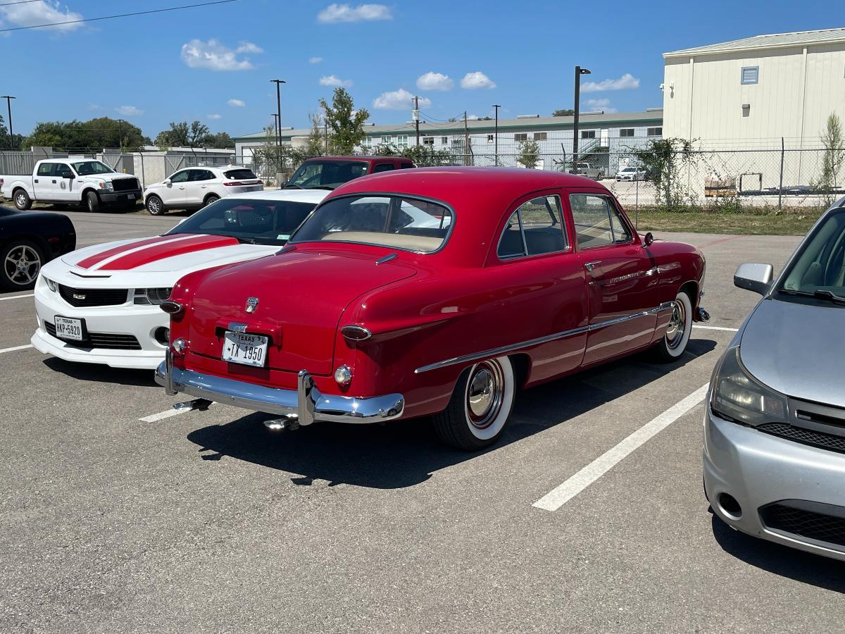 With Nails being moved around to the casualty collection point, things were beginning to look a little crowded. It was time to get the M37 (which is a '51 Dodge) off to it's new owner. Out with the old and in with the.... older? The M37 is destined to be parted out and those parts will support a street rod build. A M37 street rod? Well, your imagination is probably as good as mine. This is a crazy place where anything is possible and all of it is GOOD and the quality of the work is top notch. When we arrived, this 'sweet thang' was in the parking lot waiting for some small bit of work to be done. What could it possibly need?! According to the shop, very little of this 1950 Ford is not customized in some way. Cheers, TJ
