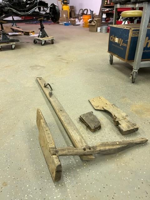 Thanks, I'll give them a call. Here are pictures of what I have. The 2 large pieced fit on a metal flange on the door pillar and I suspect there's suppose to be a piece of wood that screws into them that goes across the car body (no idea of what it should look like. The long piece apparently stretches back on the passenger side and I'd imagine there should be something similar on the drivers side (but may be different due to the spare tire (which I'm also not clear on where it goes). The small dark piece has some fabric and tacks in it with about a 1" groove in it...no idea. Anyway, this is all I've got. Thanks for the suggestions so far.