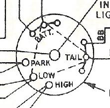 The previous owner converted the lights to 12v and added a United Pacific A5007 turn signal switch. Don't think has any bearing on how the factory light switch should be operating, but wanted to give a complete picture of what is connected.