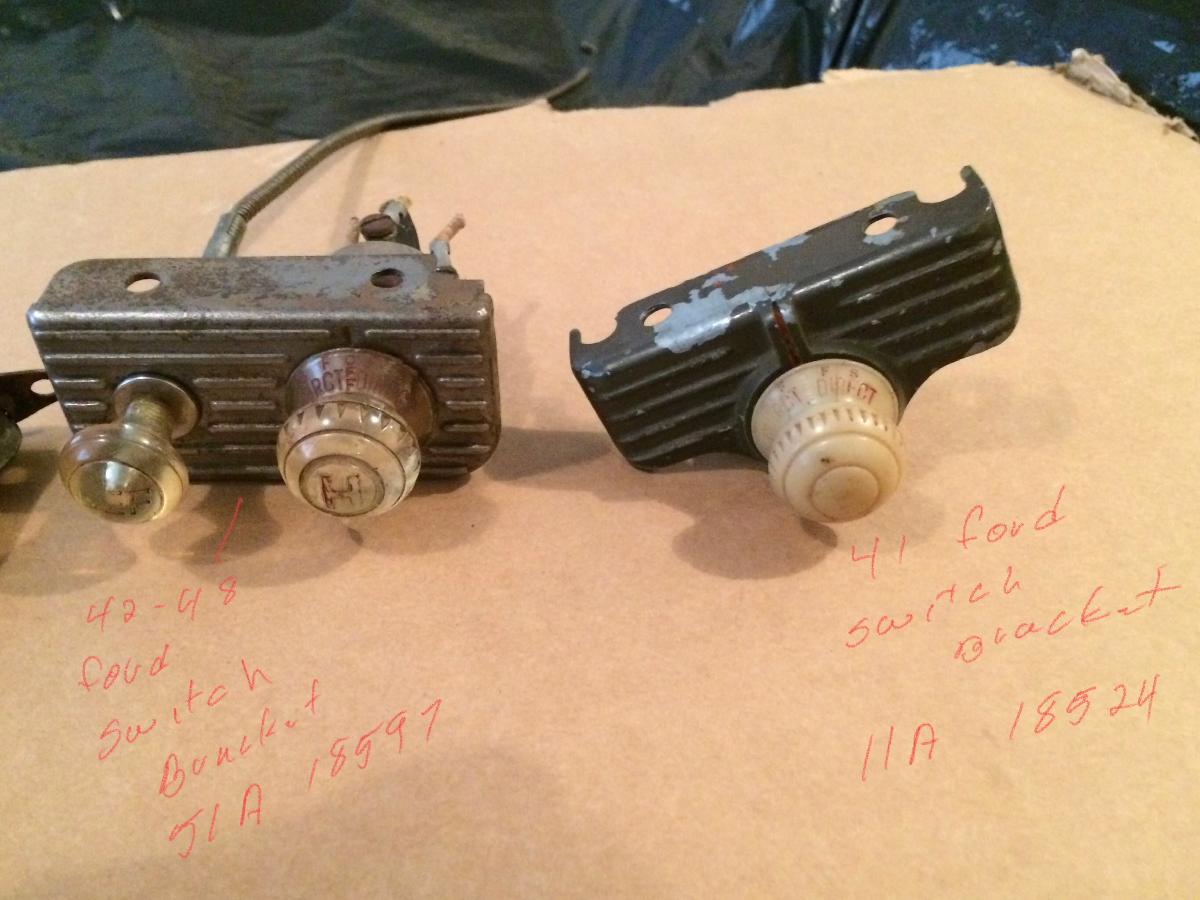 1942 Deluxe, I was using the photo in the 1941 - 48 Ford Book page 3-7 chapter 3 (Interiors) showing the dash of a 42 Ford that included the heater and the heater switch bracket. You will see the heater switch bracket has room for the switch and defrost cable. I have attached a photo of a 41 Ford switch bracket and what I thought was a 42 - 48 Ford switch bracket. If wrong let me know. Thanks Dave