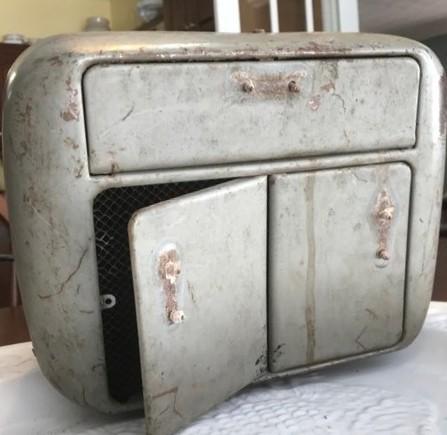 Here's a photo of the heater I bought from Mort Burton a number of years ago at Hershey. Notice the pull knob on the upper left. The 41 heaters had red stripes on the sides if they are original paint? Maybe Fred Killian can comment.