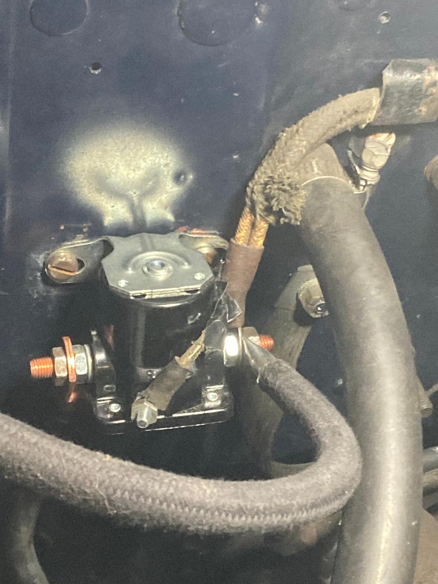 I've attached pics of the solenoid connections and the starter connection. I was thinking of the other connection on top of the starter. I don't see any bare wire or that any of them are too close where an arc would occur