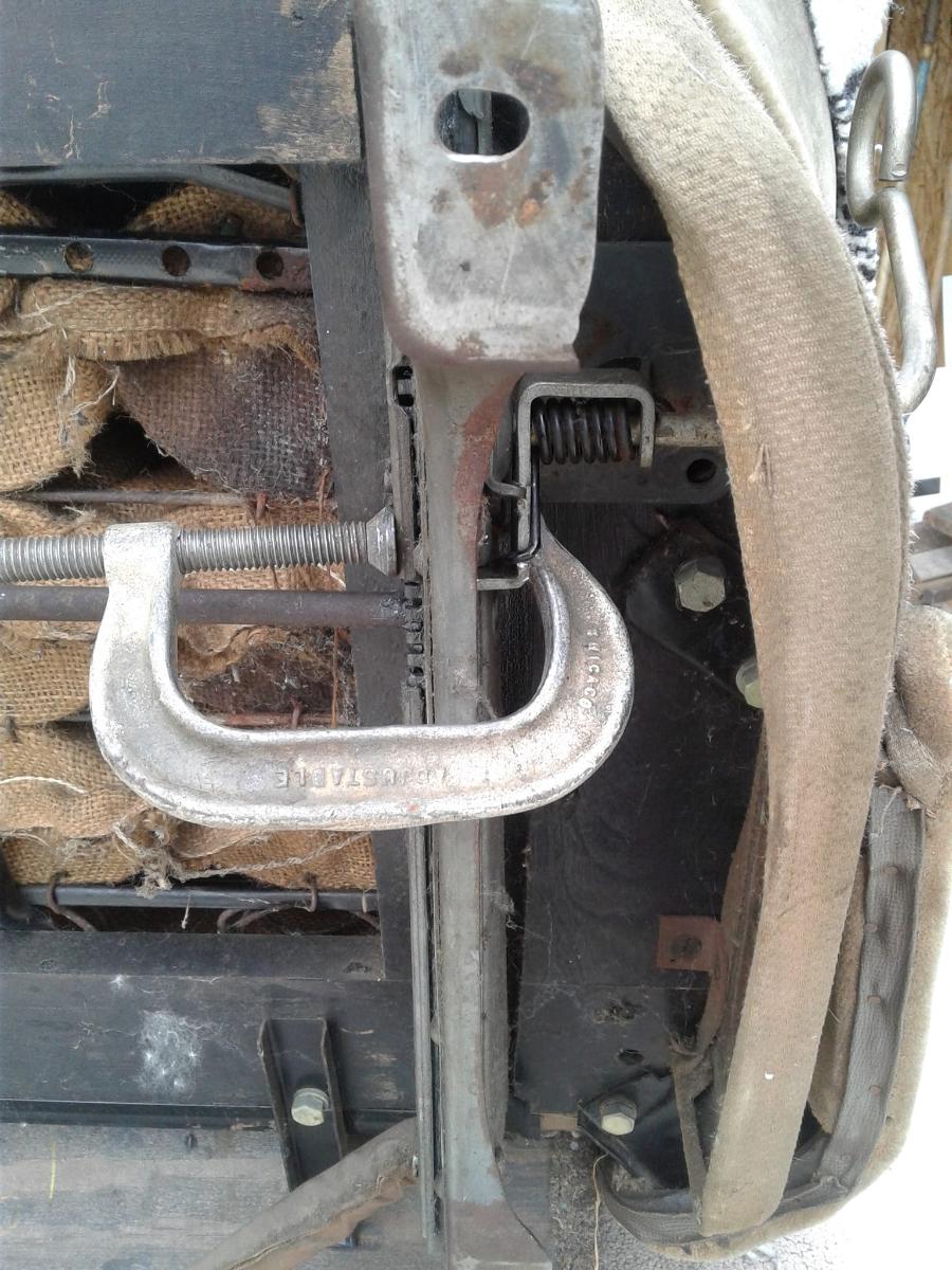 After re-installing my original equipment front seat in a stock 1937 Ford Fordor, I have discovered that it won't lock in place when adjusted. I took the seat out and observed that the seat handle blade was not falling fully in the notch that would hold it in place. I clamped the combination in place and forced the pieces back to their home positions and it seemed I had solved the problem. Got my car running and when backing into my garage the seat let loose. Lucky for me I was able to maintain control of the car.