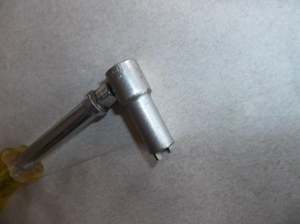 I think you could probably make one out of a 3/8 inch or 7/16 socket, using a grinder and a file to create the necessary protruding prongs.