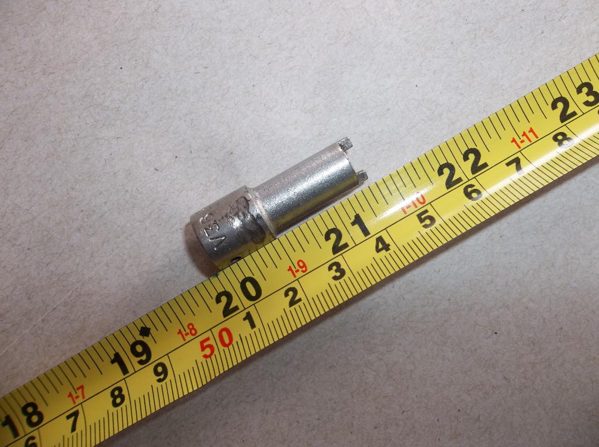 It's hollow with two prongs, and the same diameter as a 1/4 inch socket. Length is 1 5/16 inches.