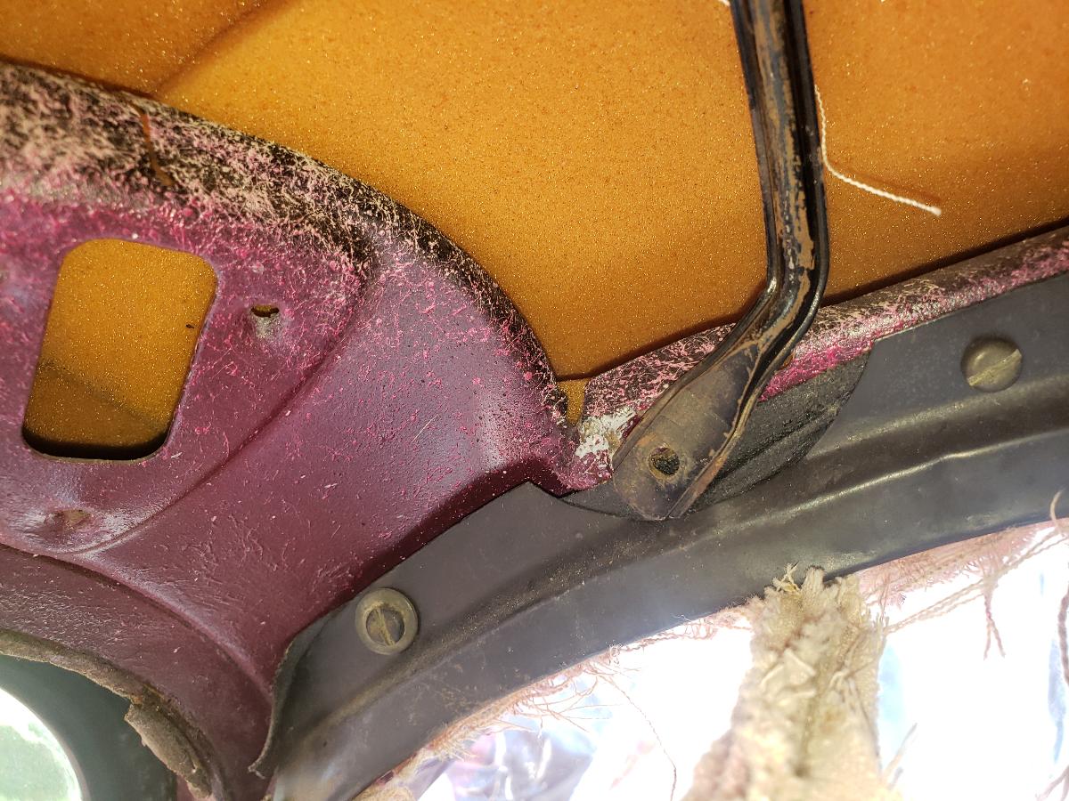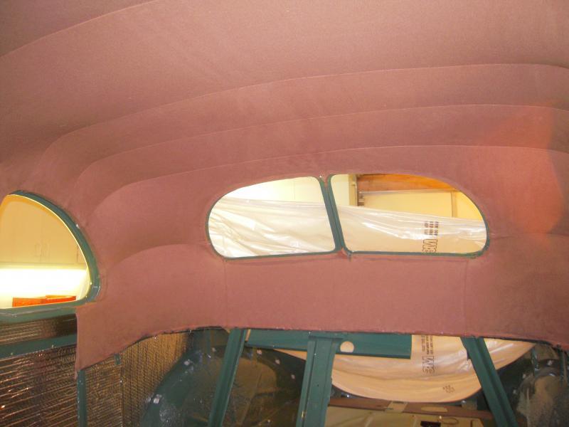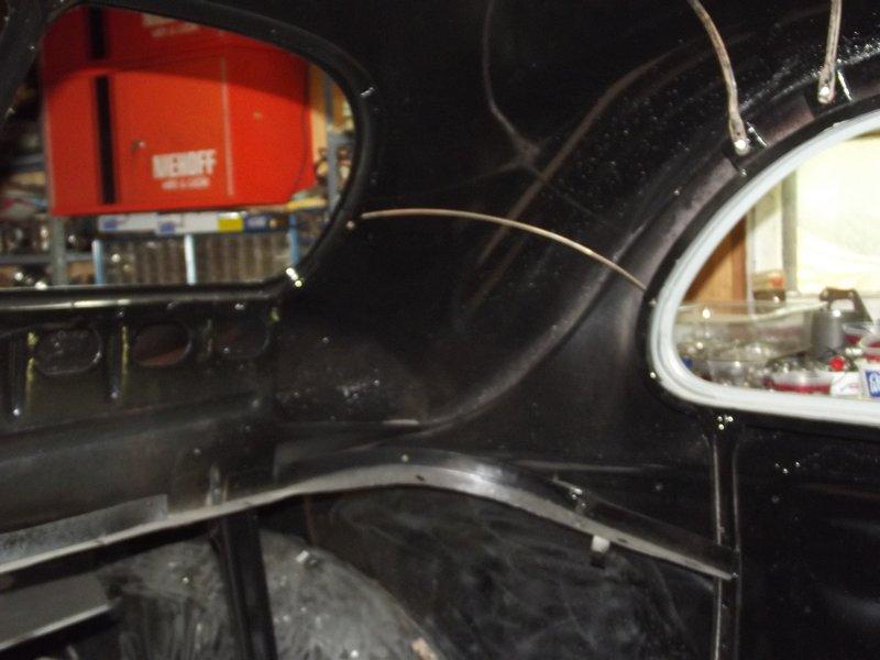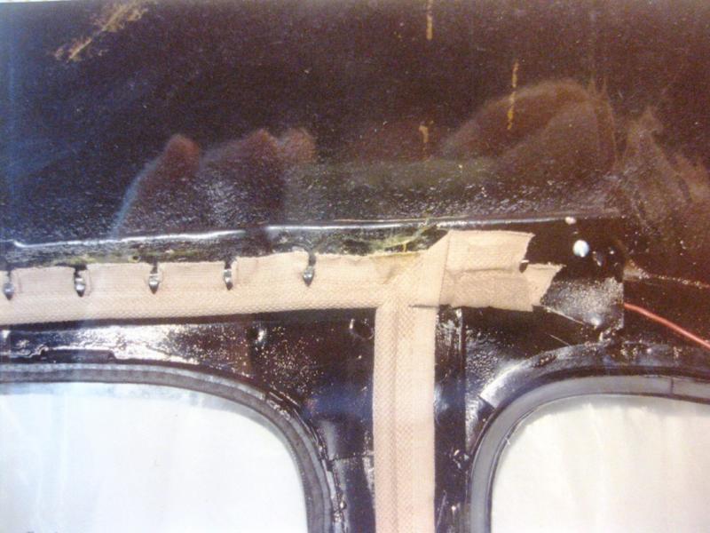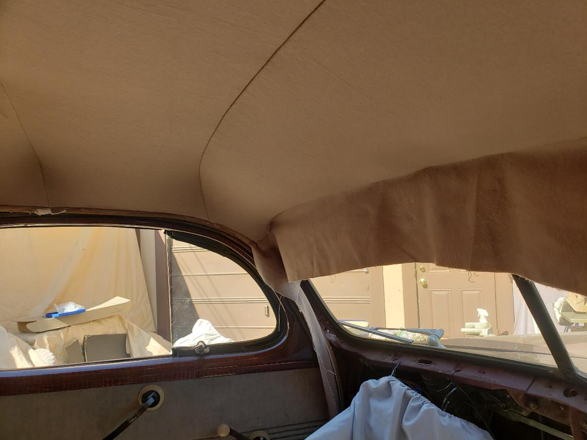 For the 40 there are also round wires that run from the rear of the quarter windows. They help form the area from the rear of the quarter to the rear window. Some of the roof bows may be numbered near their ends with screw holes, but I don't have the sequance. there are two vertical seals in the headliner under the rear window. The photos below are not mine.