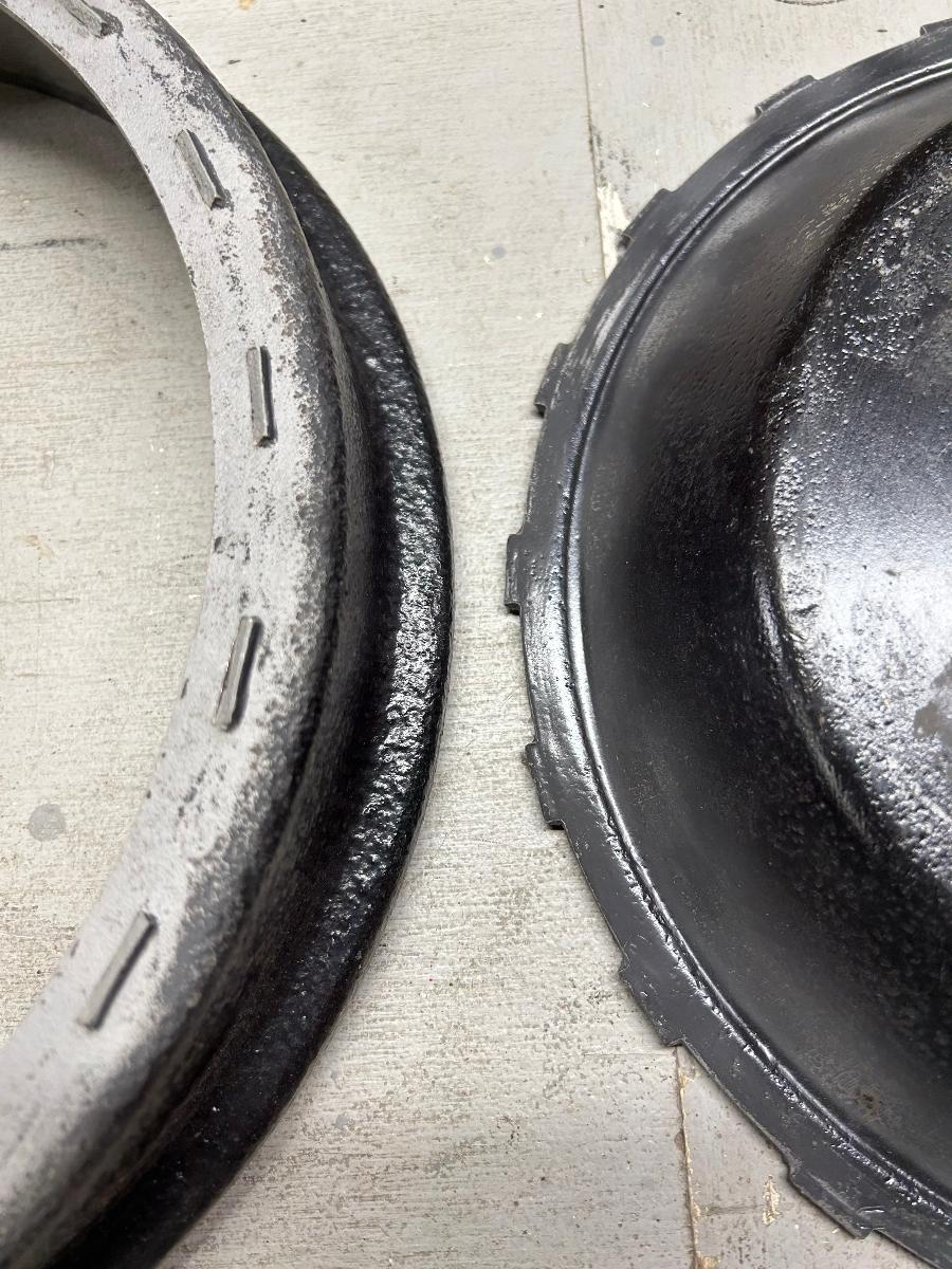 Hello All, I'm driving my 1940 Ford sedan home from church this morning when I heard an unwelcomed "clunk" from the left, rear section of the car. I pulled over to take a peek under the car - nothing visible noted. Removing the left, rear wheel revealed the issue. The brake drum was in two pieces. The drum portion, which is made of cast iron. The other portion, which I will call the 'brake plate' appears to be made of tempered steel. Twenty 'dogs' prevent these two parts from rotating independently of each other. I don't know what holds these parts together; appears to be some kind of adhesive?.?. I'm a novice welder, but I don't believe these two parts can be welded together. Maybe they could be scr*w*d together with several screws?.?. I really don't want to obtain another drum. Can anyone out there shed some light on this matter? Any suggestions, advice would be very much appreciated. Thanks much, Barney