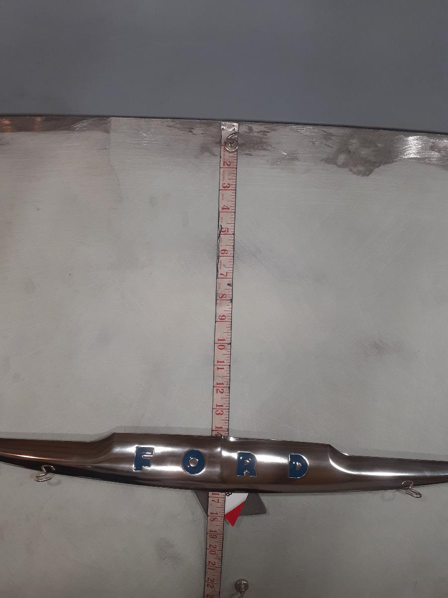 Hi I need to locate the trunk lid ornament for my project Ford. I was going to eyeball it from photos but I'd much prefer to have a measurement from someone's original. In the attached photo the measurement would be 14 1/8. Any help is appreciated.
