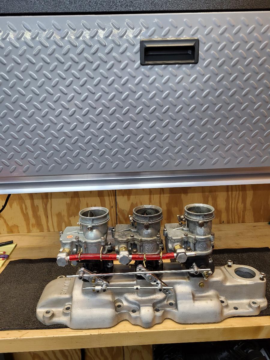 I have a dual 97 carb intake (see pic) on my 48 59A flathead. I recently purchased a 48 Evans 3x2 intake. (see pic)