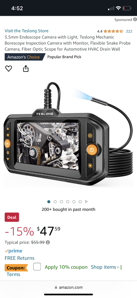 I realize it may be too late to help with this discussion but the endoscope in the attached picture is a wonderful tool for looking into a cylinder head for bent/stuck valves, rust or scorching on cylinders. Very handy for retrieving lost items with the included hook and magnet attachment. It takes pictures and video. For less that $50 on Amazon it’s a great tool.