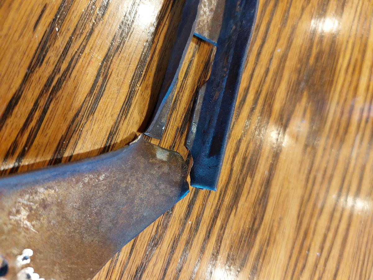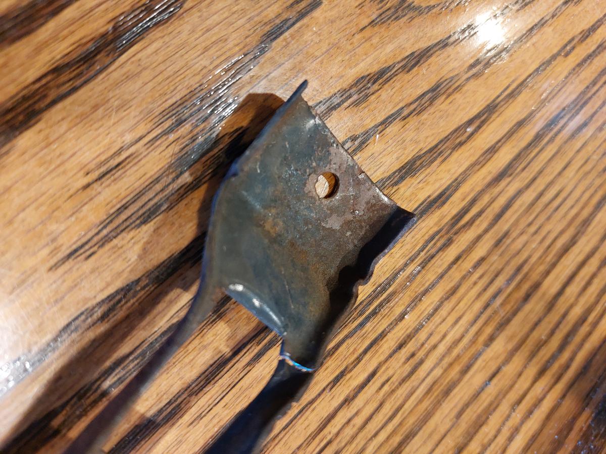 I have a 48 Tudor sedan that I'm trying to replace the driver's side window guide. This is the stamped steel piece that the anti-rattle fuzzy channel goes into. The guide is fastened to the inside of the door by 2 screws and is spot-welded or soldered in place. How do I know this? Well, when I saw that it was cracked in half at the bottom, I tried to remove it. Perhaps I should have been a bit less enthusiastic, but as there is very little information available on this topic, I decided to use brute force instead of careful reasoning. Short story, I was able to get the guide out but now I have to replace it or get it fixed.