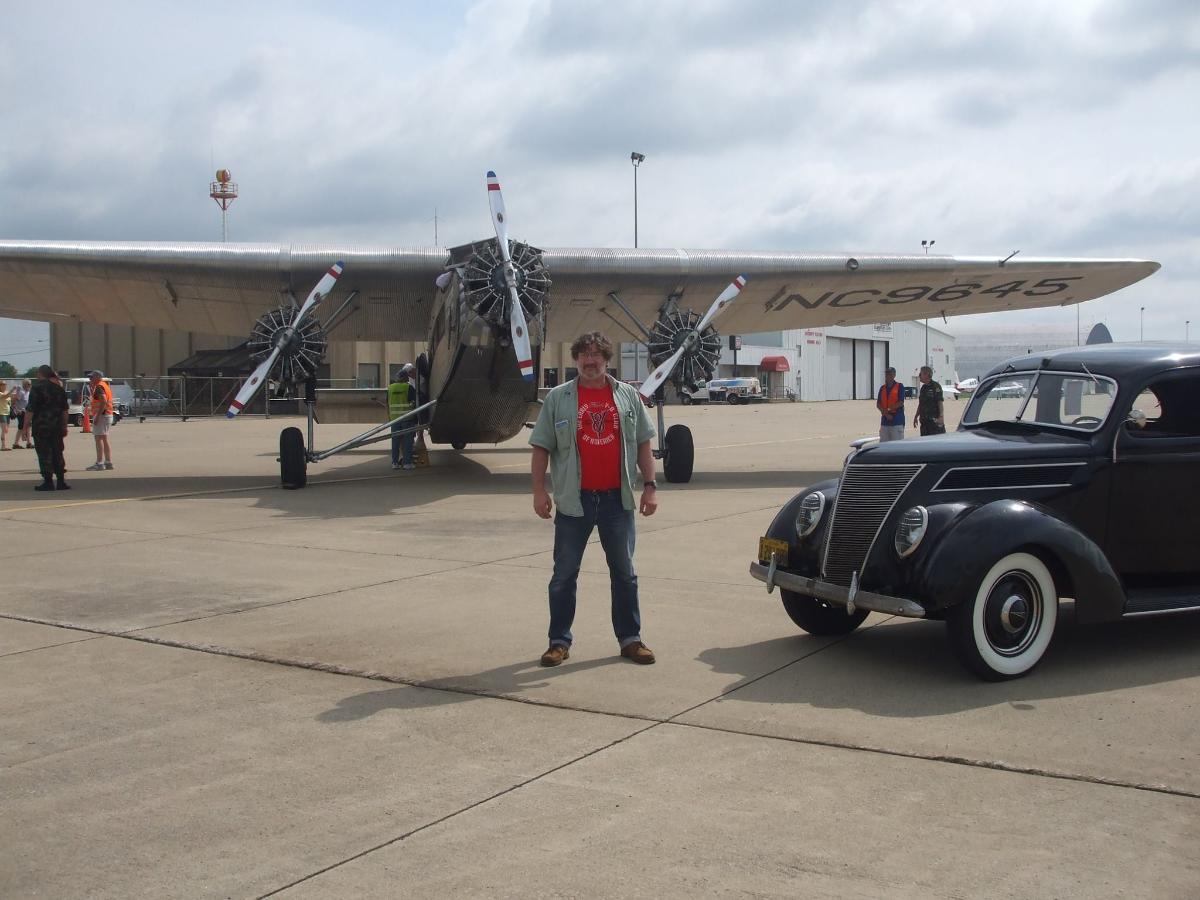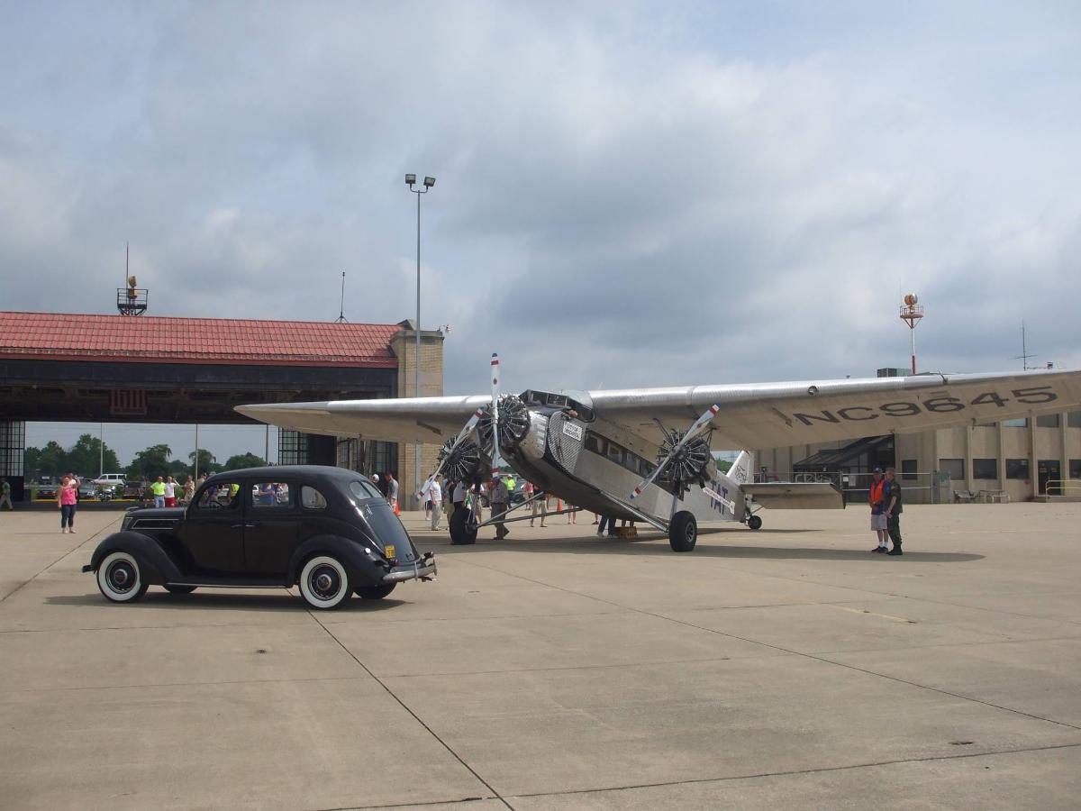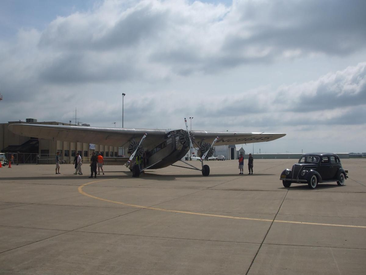Great article about the Ford Tri-Motor airplane. The EAA Ford Tri-Motor made a visit to the Ford Motor Company Airplane Hangar at Lansing Municipal Airport (IGQ) in Lansing, Illinois, some years back. I was a member of the Commemorative Air Force back then and my friend, fellow CAF member and senior EAA guy on the field, Steve Sikorski, allowed my 1937 Ford to be posed with the Tri-Motor after I took the flight. Here are the photos of the Tri-Motor, my 1937 Ford and the Ford Motor Company Airplane Hangar.