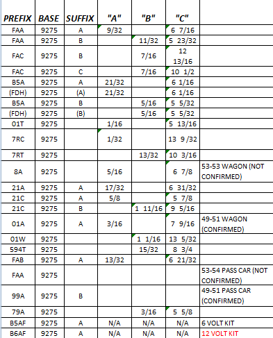 I salvaged a sender from a rusted out '51 Ford sedan, to replace the "jobber" unit in my '46 Super Deluxe. I didn't have the chart/info that Dan posted, so I did as Jay posted. The sender arm and float from the salvaged unit was in bad condition, so I spliced the "jobber" sender arm and float onto the arm of the salvaged KS unit, shaped the arm to get the travel needed and I now have a reliable fuel gauge.