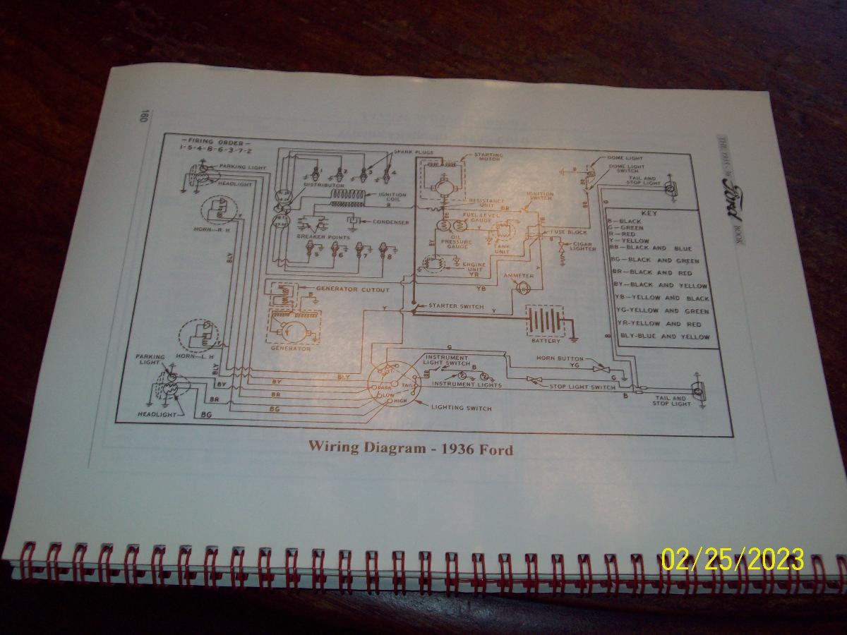 Enclosed is a picture of the 36 Ford wiring diagram. The starter button wiring is missing but it is a direct connection to the starter relay. The button applies a ground through the dash which energizes the starter switch. This works (as your car starts) so that connection is good. This wire should not go anywhere else.