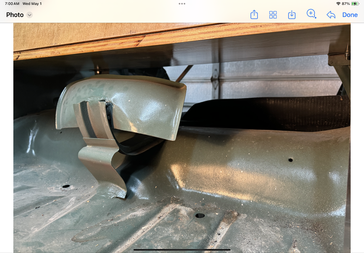 I have a '47 ford convertible I am slowly restoring. I bought it as the proverbial "bucket of bolts, but everything is there..." I'm at the point where I want to install the rear seat, but my re-upholstered upper seat doesn't fit where the mounts are. I'm pretty sure the mounts have been tack welded in the wrong place. It looks like the former owner was trying to delete the top and just mount the seat to the rear of the passenger compartment. Anyone able to take a picture of the stock rear upper seat mounts, with the top irons, so I can get an idea of what I need to fabricate?