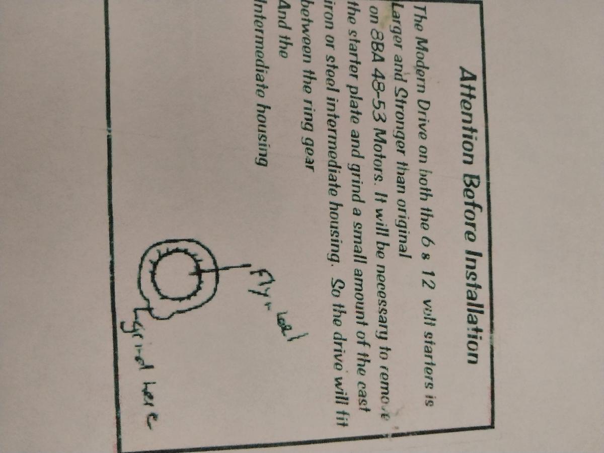 I'm converting my 36 coupe to 12 volts. I had purchased a new starter and am now ready to install it except they included a little piece of paper that the modern drive on the new starters are larger and stronger than original on 8BA 48-53 motors. They also included a hand drawn picture showing to "grind here". I cant make out where this is exactly. Any suggestions?
