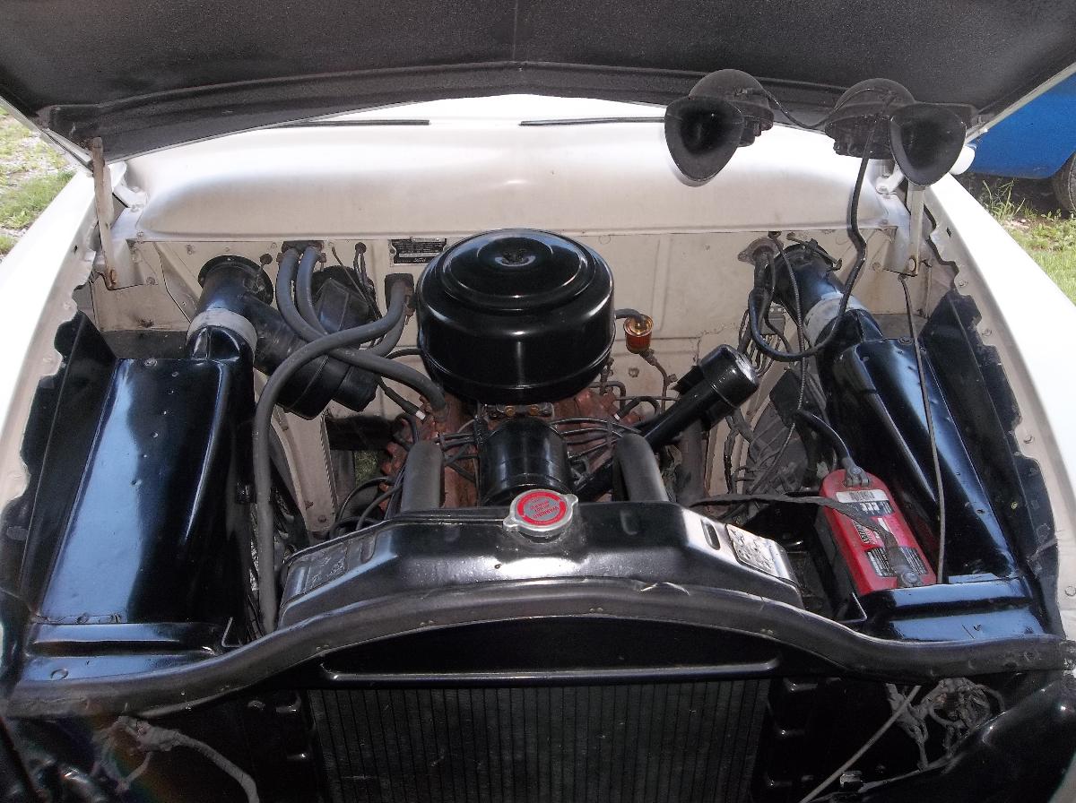 Open the hood, and look on your Victoria's firewall for the data plate that Ken is telling you about. There may also be a sequence of letters and numbers stamped into the painted cowl, above the horizontal pinch weld, more or less directly behind the air cleaner. That's a 1951 Ford firewall and engine room in the photo below.