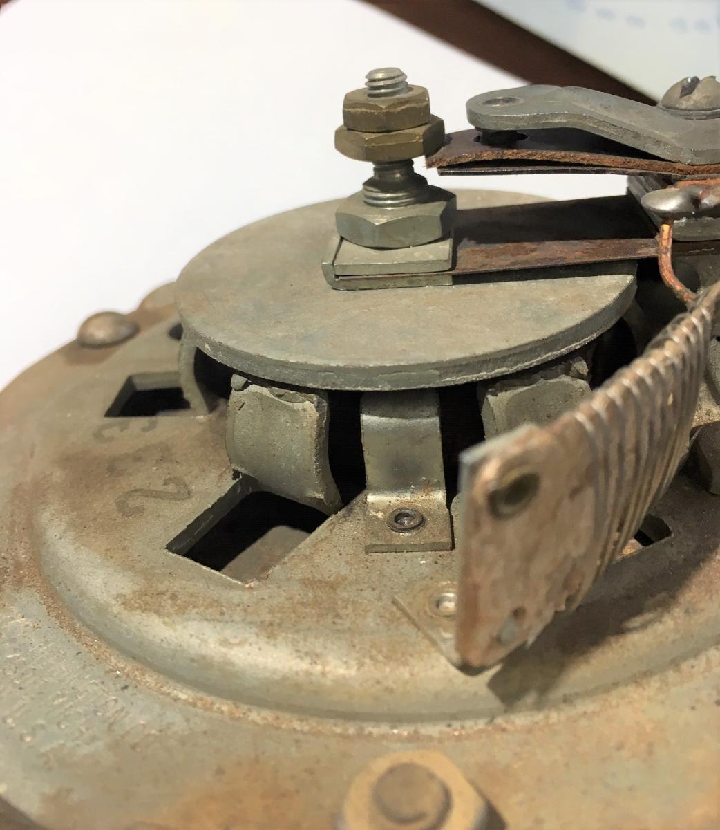 ragtopman gives good advice. One of the horns on '46 Coupe didn't work, so I checked with an ohmmeter between the horn body and the lead wire, and found no continuity. I removed the cover. cleaned the points and it worked like new. Looking at the picture, the points are just to the right of the brass adjusting nuts. It may be a silly question, but, is it the horn you hear that clicks, or is it the horn relay?