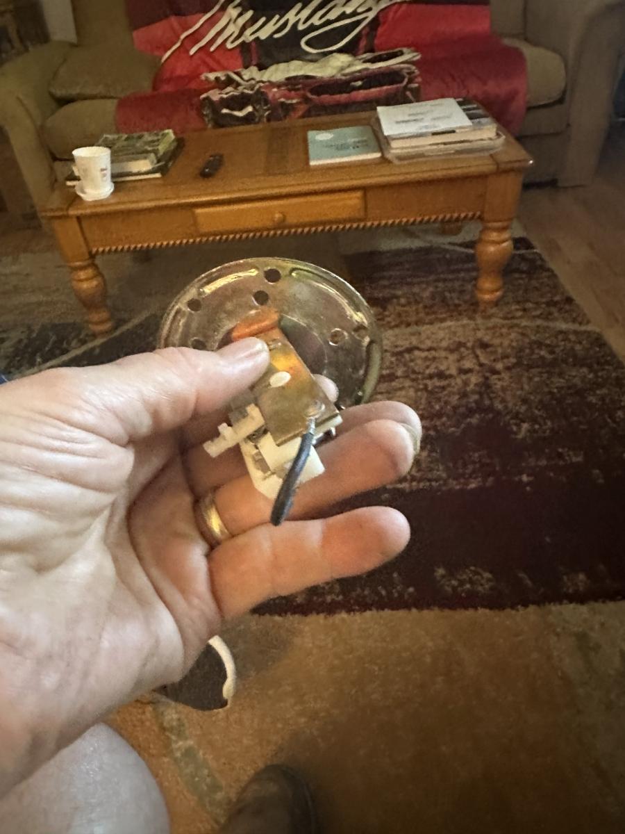 Hi, the gauge doesn't work at all, the float is gone. Actually, that's not true. When I put the sender back i had moved the arm where the float would have been and that's changed where the gauge read, so that's a good thing. I know my wiring is good. This was definitely cob-job, trying to make the 6-hole unit work on a five-hole tank. The screw holes don't go all the way through, so that is lucky, it's like the top of the tank is steel rolled over onto itself, so I can keep the metal from big hole pretty easily. I'm wondering now, I havent pulled it apart yet, I m waiting on my 5-hole sender from Shoebox Central, and its been about 100 degrees here this week, if the screw might be what's stripped and not the threads into the tank. If I get lucky there this may not even require a retap. Thanks again. Bill