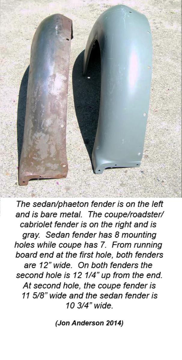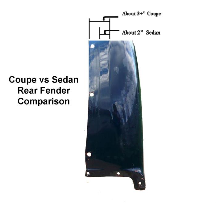 What is the difference between the coupe and sedan rear fenders on a 35 ford