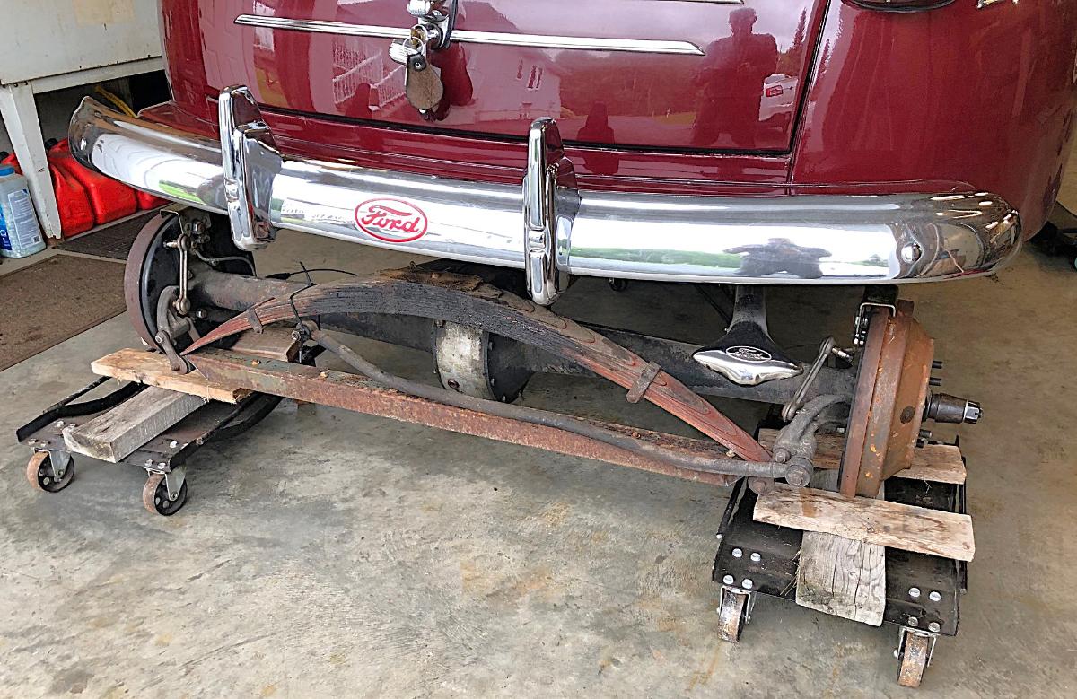 Here is an excerpt from an article I submitted to the Southern Ontario EFV8 Newsletter, about removing the rear axle/torque tube to change the torque tube center bearing on my '46 Super Deluxe Coupe.