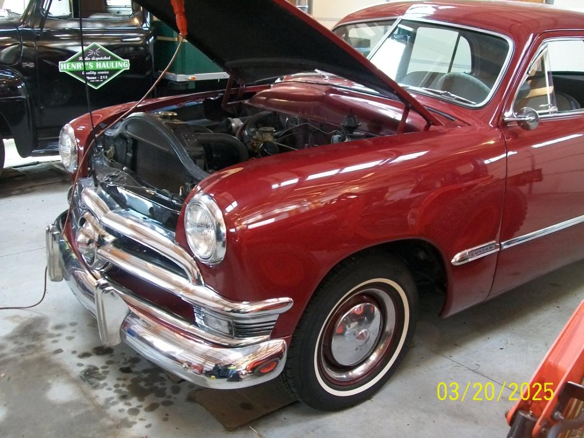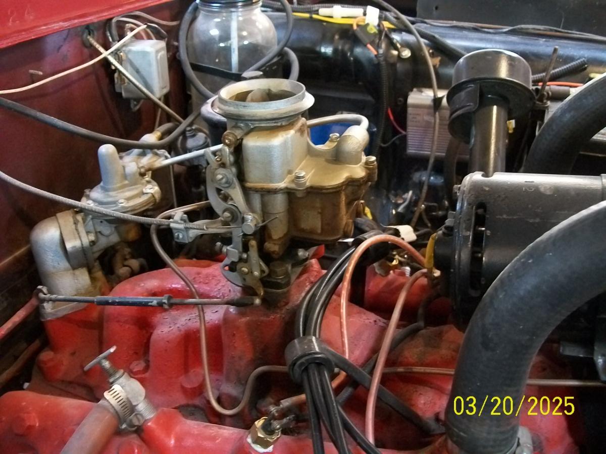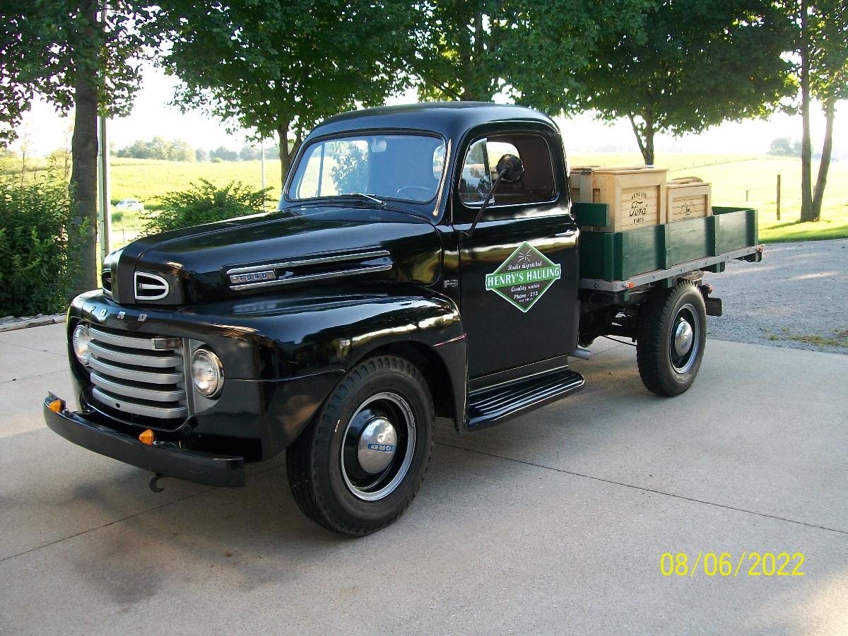 Hey thanks Paul 39, and 40 coupe, and 40 cue, I greatly appreciate your responses. Let me expand my story and draw on your expertise. So once running the car runs fine, starts fine too. It is only the initial start that is hard. I only drive my car to church on Sundays that are nice days. If it is a rainy Sunday I take the Prius. So that means that sometimes my '50 Ford will sit for 2 weeks with no start. When I attempt to start it after two weeks of sitting it needs a shot of ether to get it to start. My other classic Ford, a 1949 F-3 pickup, stake bed, will sit for two weeks too. But after a few pumps of the accelerator, a little choke, it will pop right off. No problem. Same 8BA flathead with a Holley 94 carb. Both are pretty much stock. The 1949 F-3 is 12V. Other than that, it is stock. I suspect, before my ownership of my '50 Ford, that maybe the carb was rebuilt, maybe with poor quality Chinese parts (just my guess). Also, I sort of remember a valve or something at the bottom of a Holley 94 that can be adjusted opened or closed? Maybe for high altitude cars?? I may be way off on this. But if that valve (if said valve even exists) is open, then I suspect that could be a reason why my carb is always dry? Yes? Thoughts? And as stated in my initial post, the accelerator pump will not squirt any gas after sitting for two weeks. Then after running for a while, it will squirt some gas, but the squirt is weak at best, not a strong stream of gas at all. To Paul 39: I did email Charlie Price as per your good advice. I also heard he is very hard to get a hold of via email or phone calls. And to answer your question, no I did not put gas down the vent tube and fill the bowl like I should have. I just shot some gas down the throat of the carb and had Pam try to start it, which it did start. To 40 Coupe & 40 Cpe: I can contact Charlie Schwindler. Thanks for your referral and good advice John PS: Here is my 1949 F-3. Starts and runs fine. No carb issues at all...