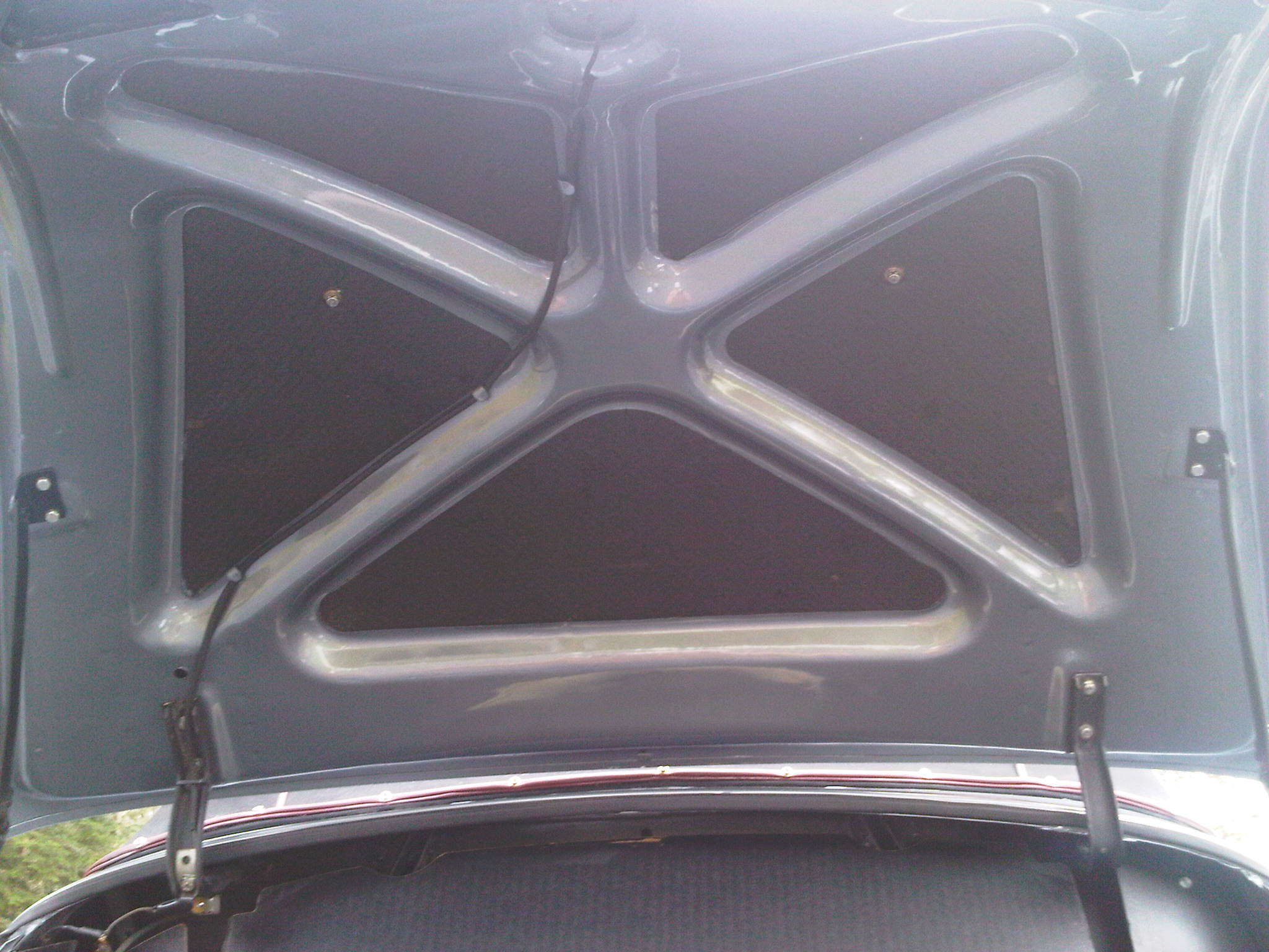 On the underside of the trunk lid there is an insulation-type material. Mine is black but I've seen cars with it painted body color. Where can I find this stuff and should it be painted body color? I'm looking to stay correct for judging. Any help appreciated. Photo attached.