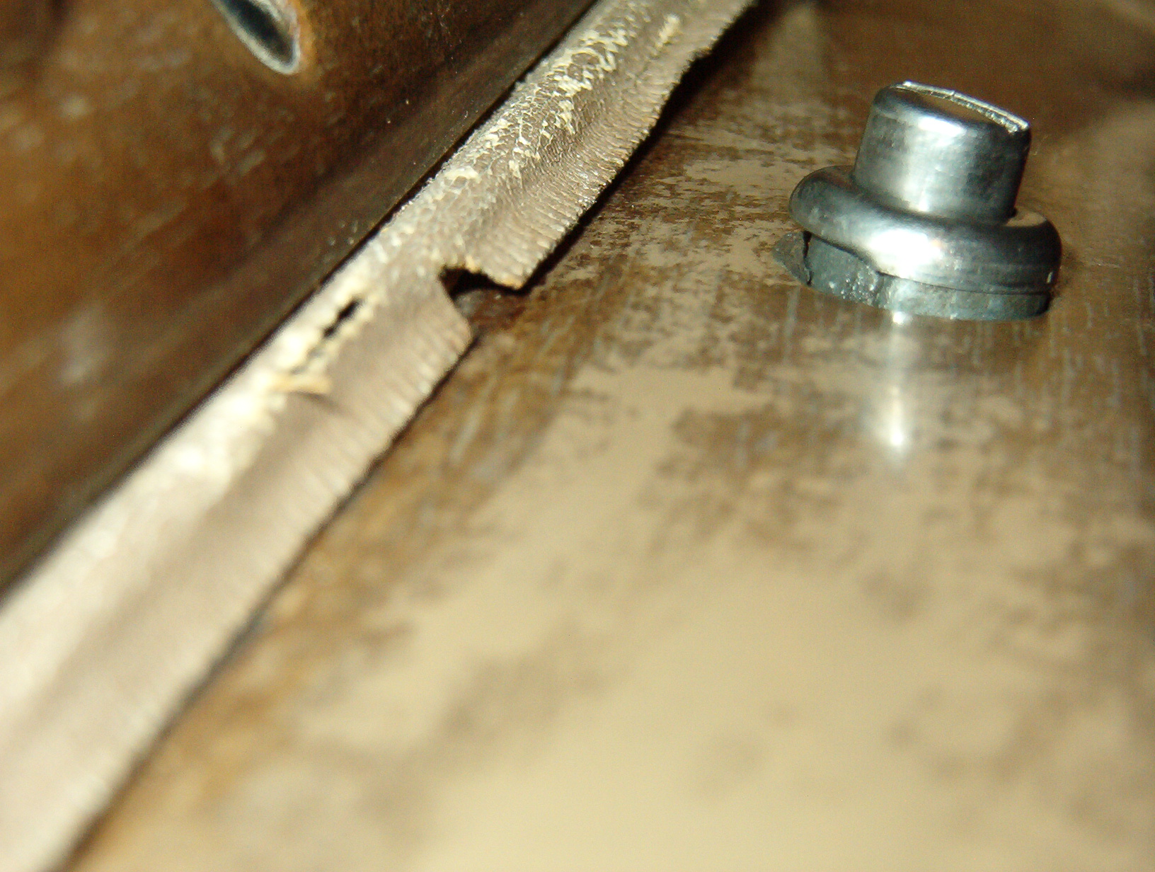 Problem - Unable to remove the glove box lock assembly from the dash. A stainless steel cap is pressed on to the push button and its diameter won't let it drop down through the hole in the dash. How is the cover removed without damaging the dash paint or the cover? Is there a way to maneuver the latch to allow it to be removed?