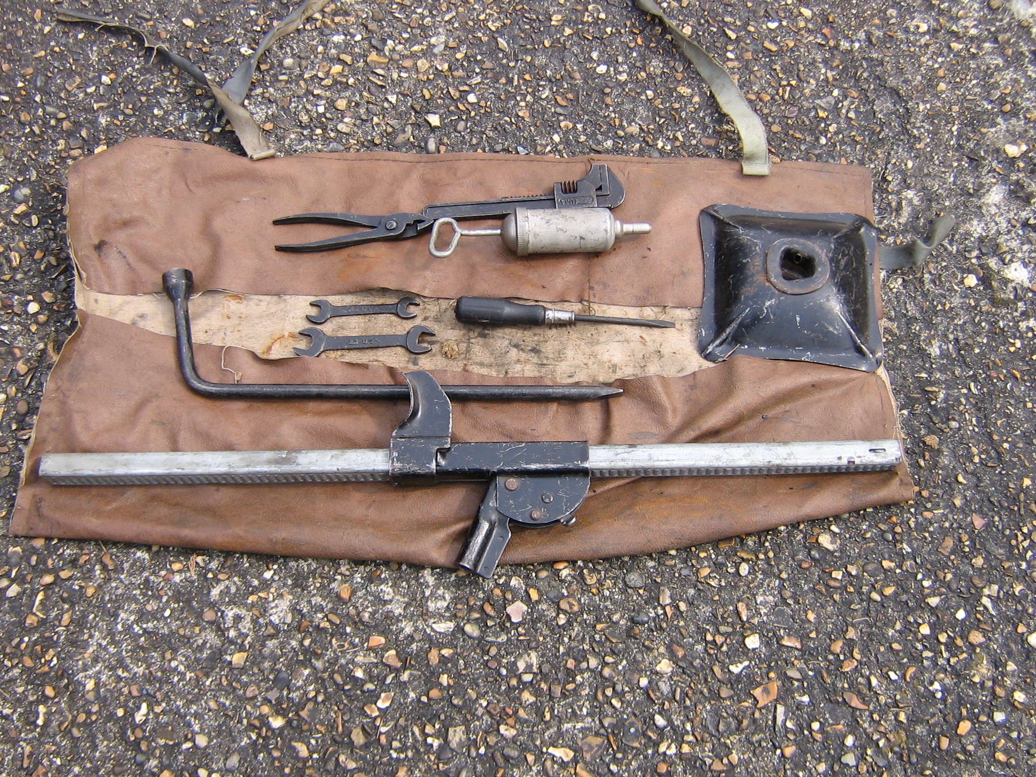 Photograph of the original tool kit in my unrestored, original 1949 Custom Sedan built in Antwerp, Belgium. Hope this helps.